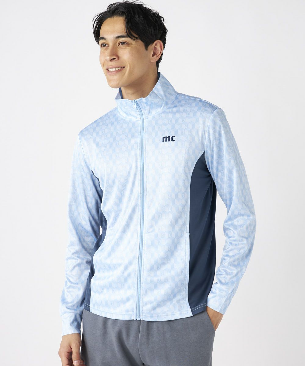 脇の切り替えがシルエットをすっきりと見せてくれる長袖のUVジャケット。衿も高めの設定なのでメンズも気 になる首元の紫外線をしっかり対策してくれます。パリから届いたMCが散りばめられた総柄がスポーティーな がらもクールな印象を与えてくれます。