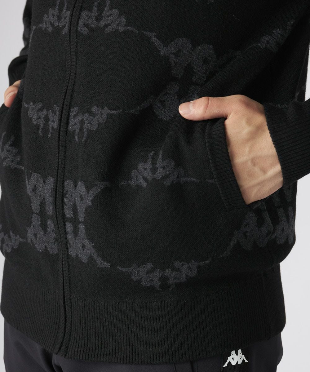 総柄ロゴが存在感抜群のクールなジップアップセーターです。