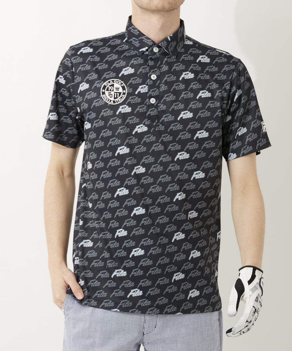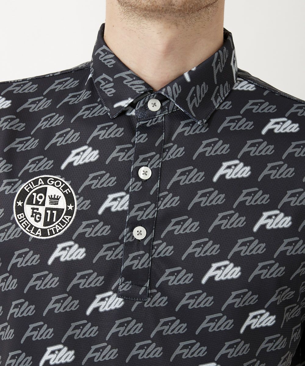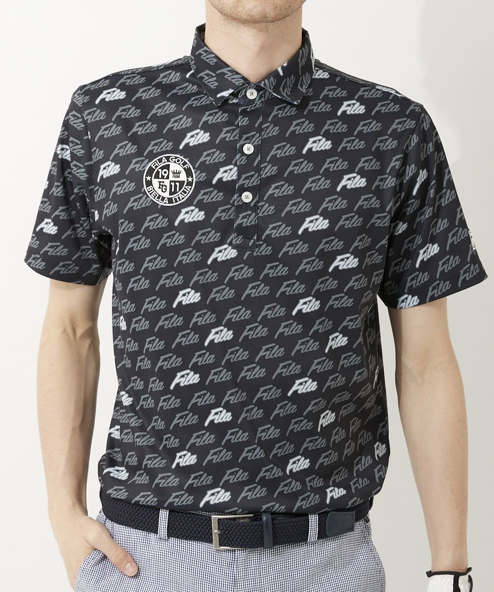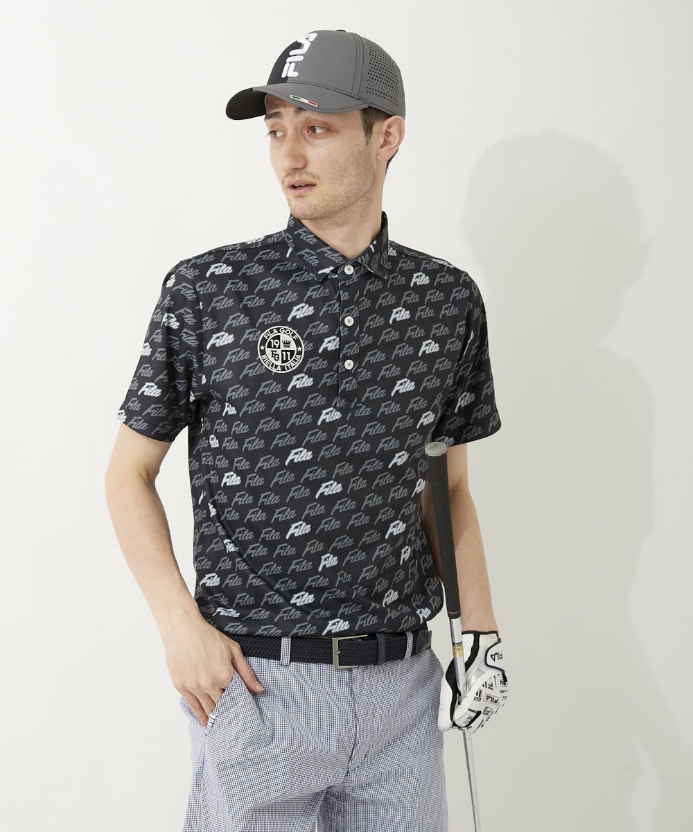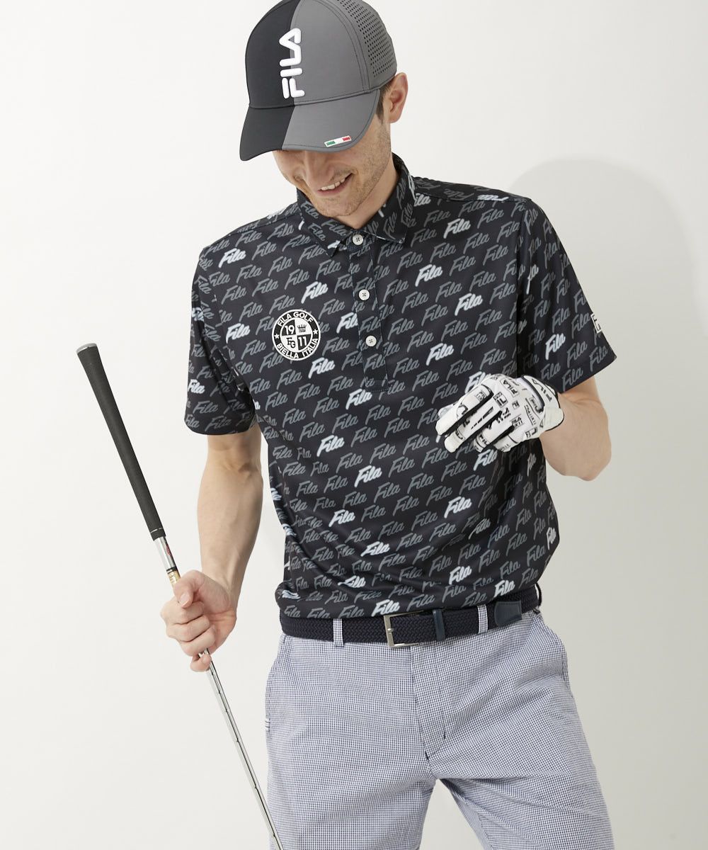 メンズ FILAロゴプリント半袖ポロシャツ|UV遮蔽率90%以上 / 吸汗速乾