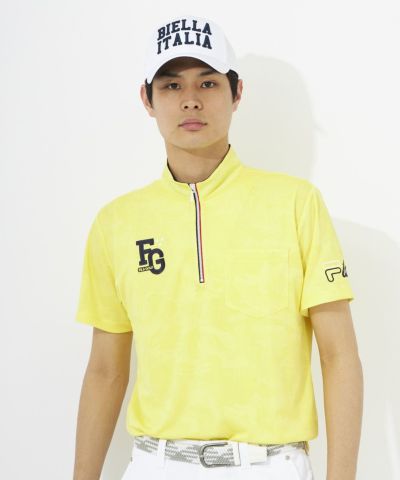 リサイクル素材を使用したジャガード素材のハーフZIPシャツ。衿付けのヘリテージストライプテープがアクセントになっています。裾のスリットがお腹周りのしわを軽減させます。