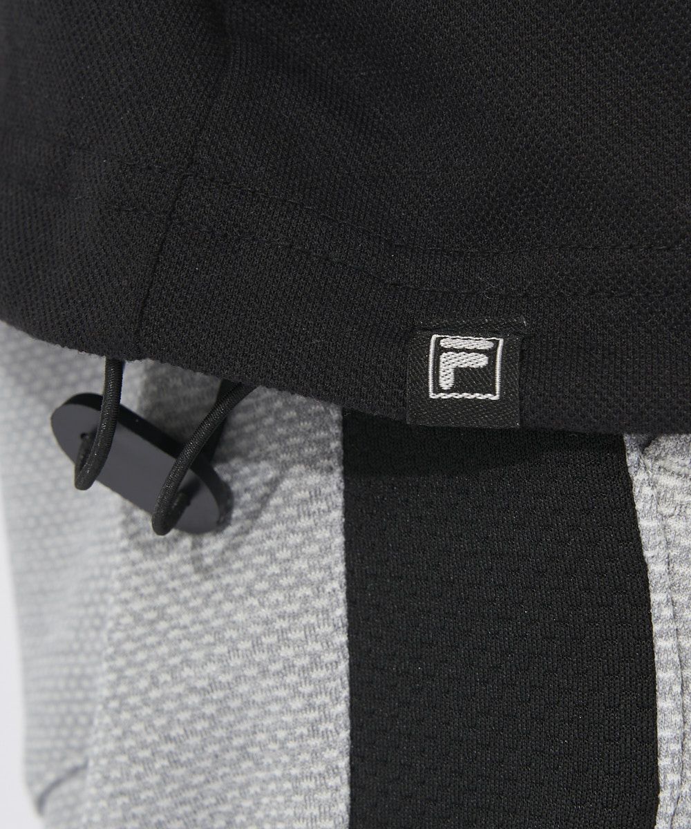 コットンライクのドライミックス素材を使用した着心地の良いポロシャツ。右袖はカラー配色となっており、トレンドのドロップショルダーシルエット。シャツアウトして着用できる様裾にスピンドルを使用しております。