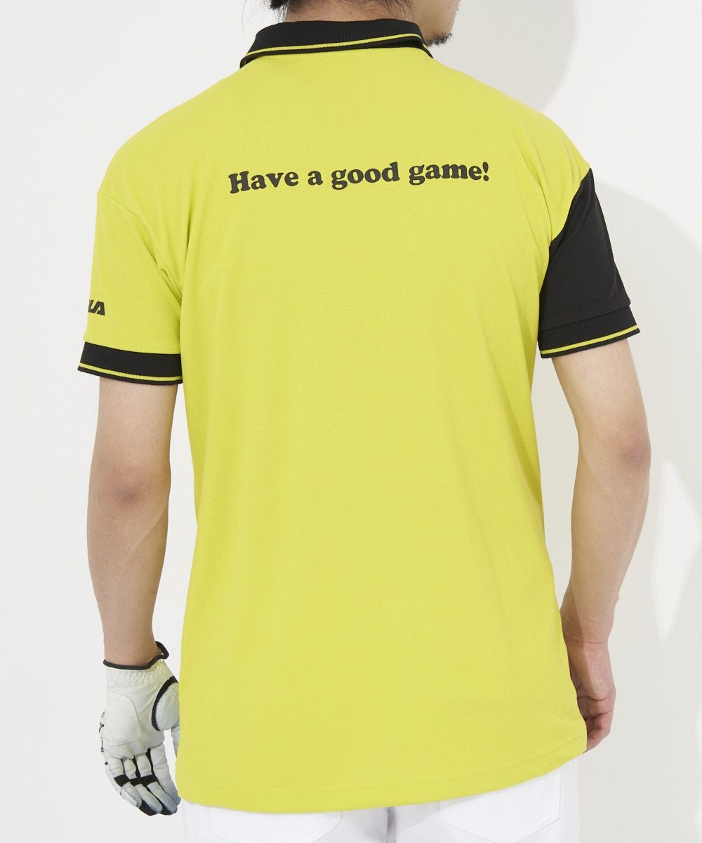 コットンライクのドライミックス素材を使用した着心地の良いポロシャツ。右袖はカラー配色となっており、トレンドのドロップショルダーシルエット。シャツアウトして着用できる様裾にスピンドルを使用しております。