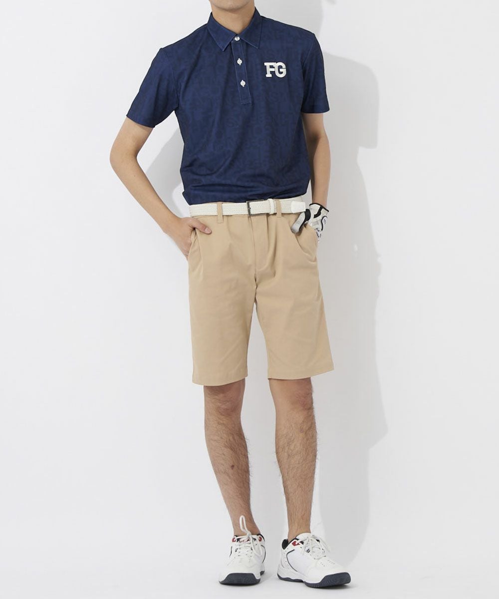 メンズ ベルト付きツイルショートパンツ|吸汗速乾/UV/ストレッチ