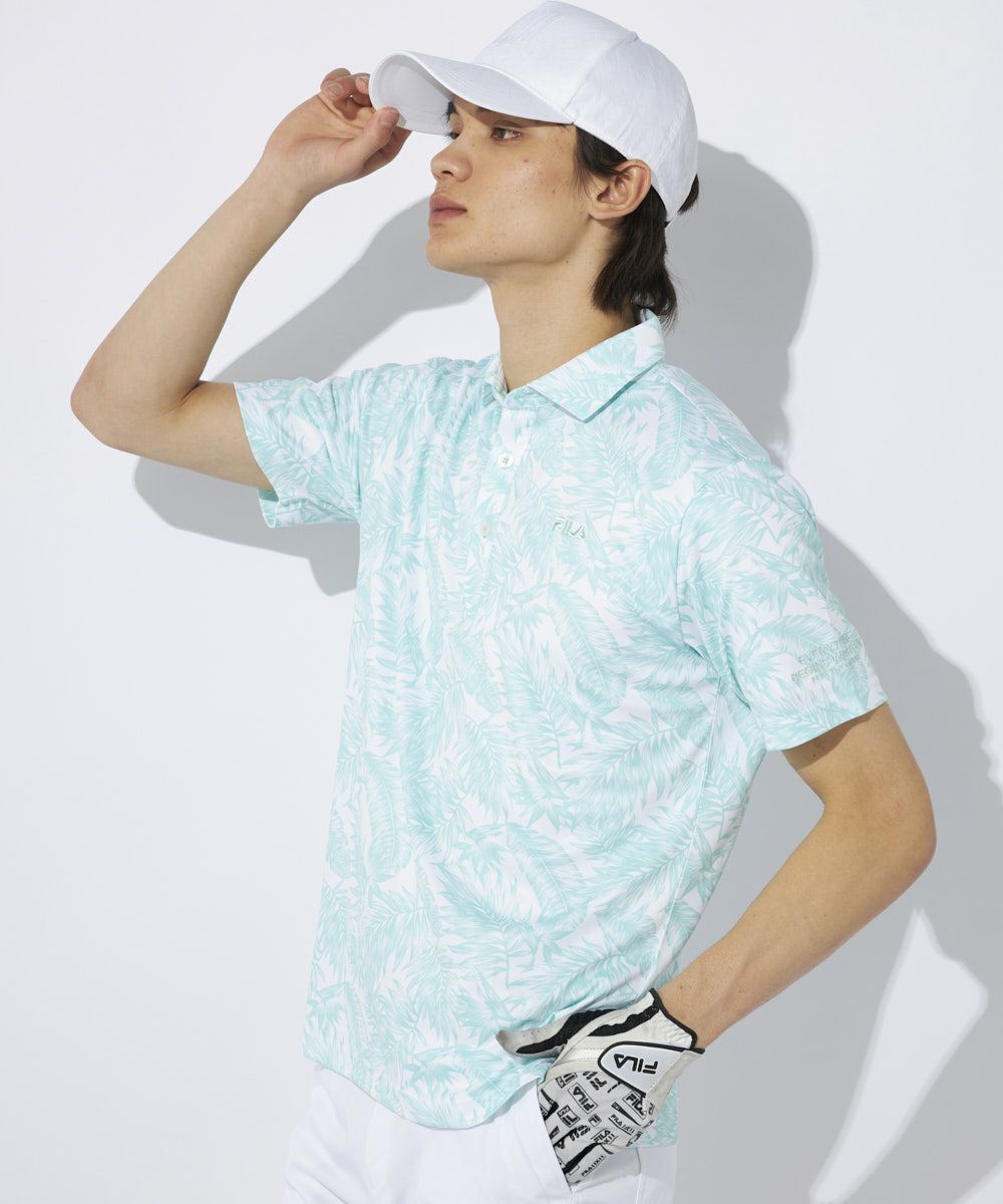 表面には外気や太陽光などの熱エネルギーを遮る「遮熱性機能」を、肌面には「接触冷感機能」を持ち備えたひんやり素材です。爽やかなワントーンのボタニカル柄半袖シャツです。