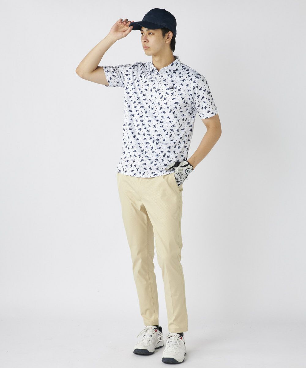 小さい花をちりばめた、さりげなくかわいさもあるゴルフシャツです。さりげなく花柄なのがポイントです。シンプルなパンツと合わせておしゃれにコーディネートを楽しみましょう。