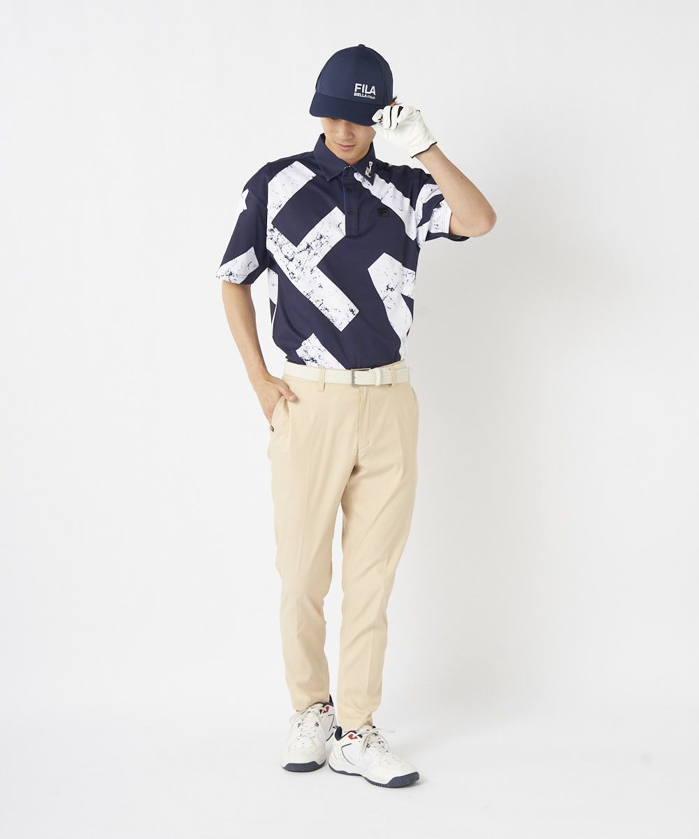 シンプルながらも細かな柄が施されたゴルフパンツで、上品で洗練された印象を演出します。