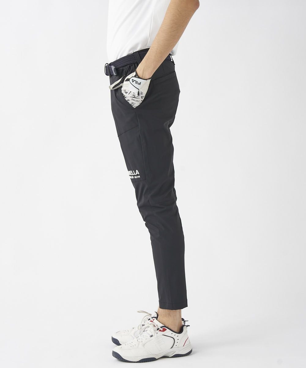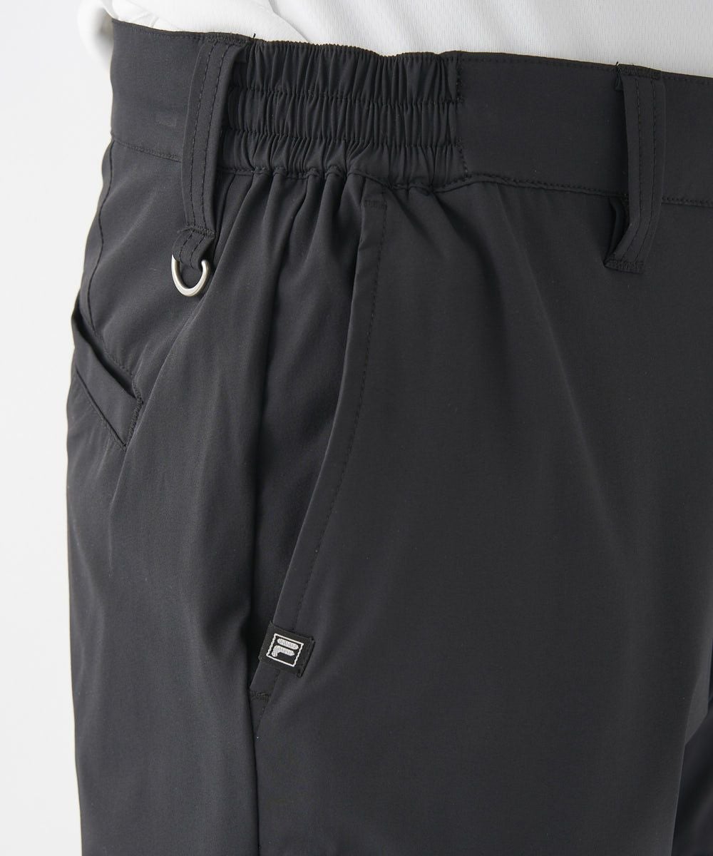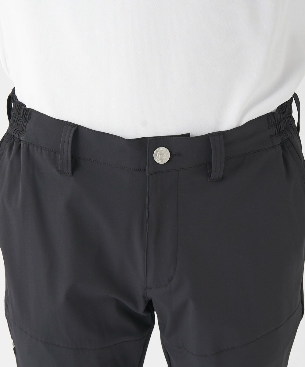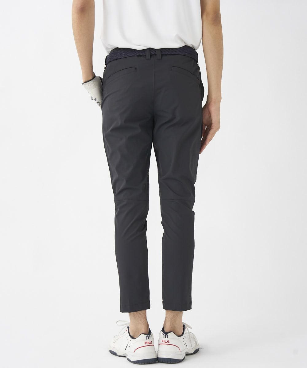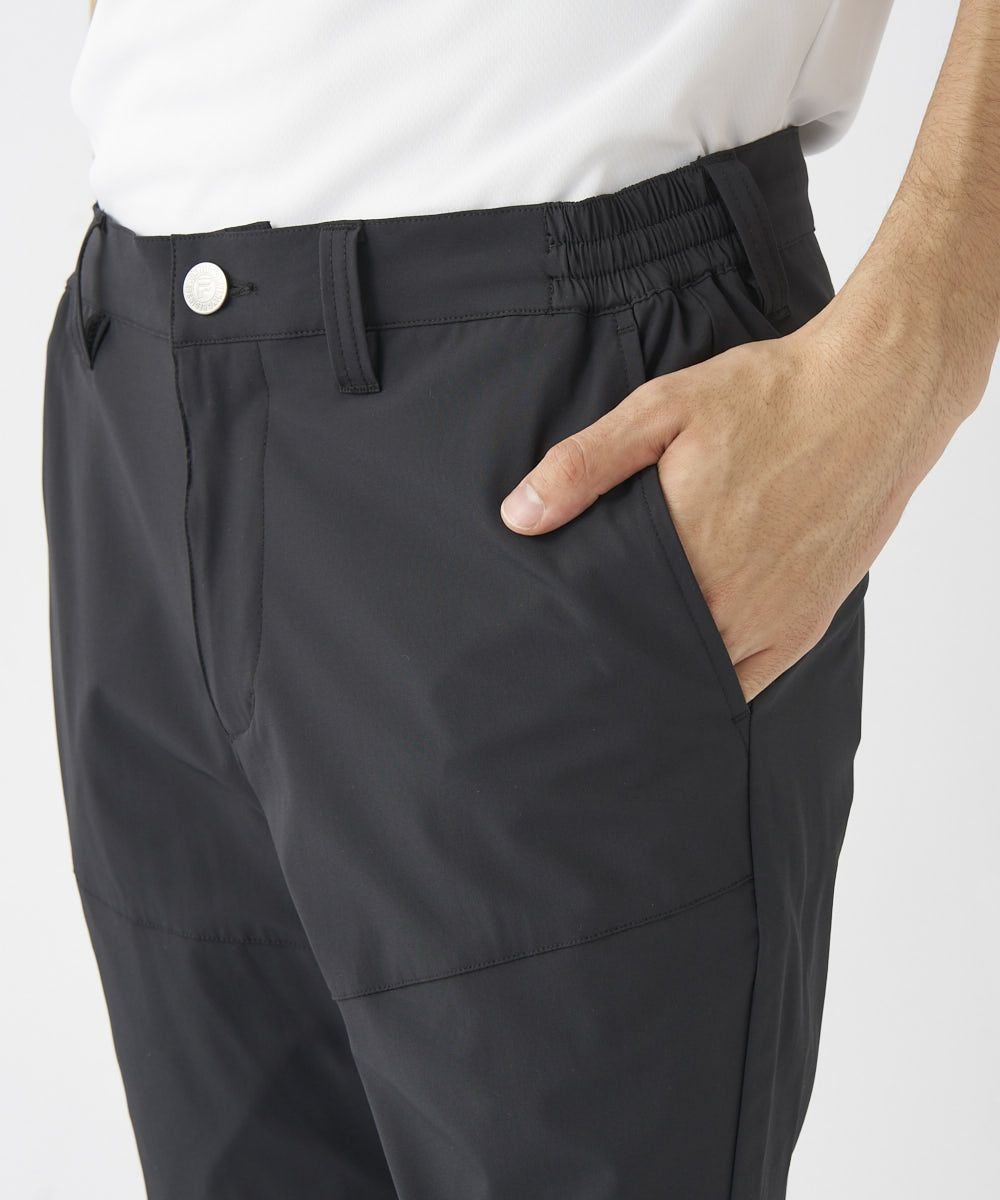 撥水コーティング加工で雨をしっかりガード。天候が変わりやすいゴルフシーンでも安心。裾上げいらずの9分丈仕様に加え、細身のテーパドシルエット。すっきりとしたシルエットで、スタイルアップも叶います。