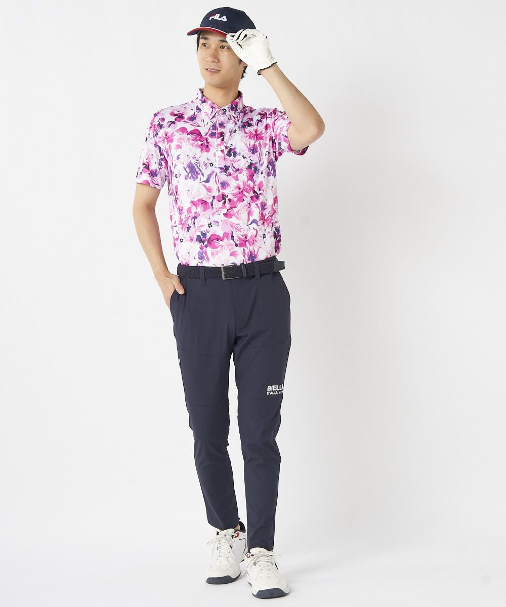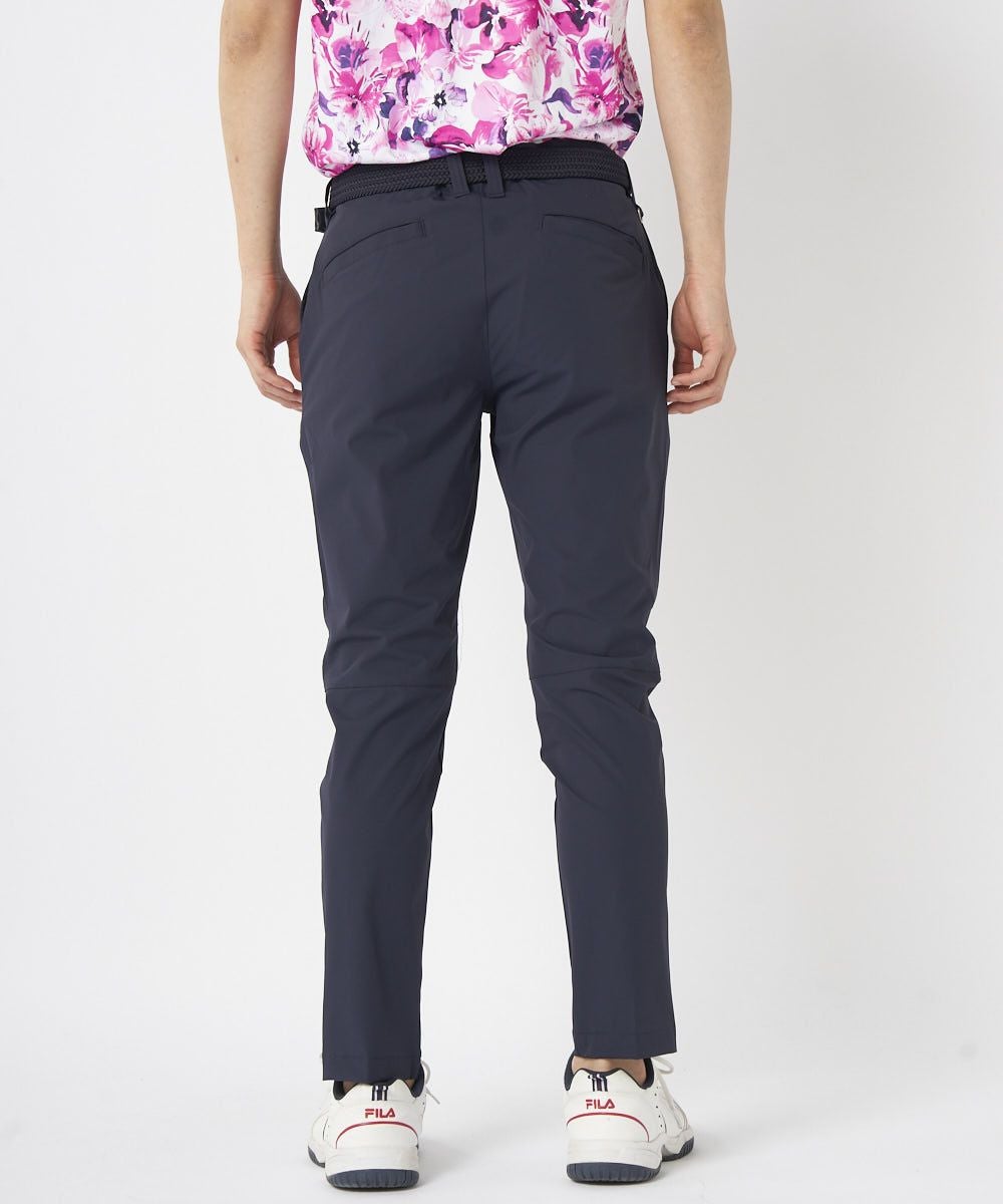 撥水コーティング加工で雨をしっかりガード。天候が変わりやすいゴルフシーンでも安心。裾上げいらずの9分丈仕様に加え、細身のテーパドシルエット。すっきりとしたシルエットで、スタイルアップも叶います。