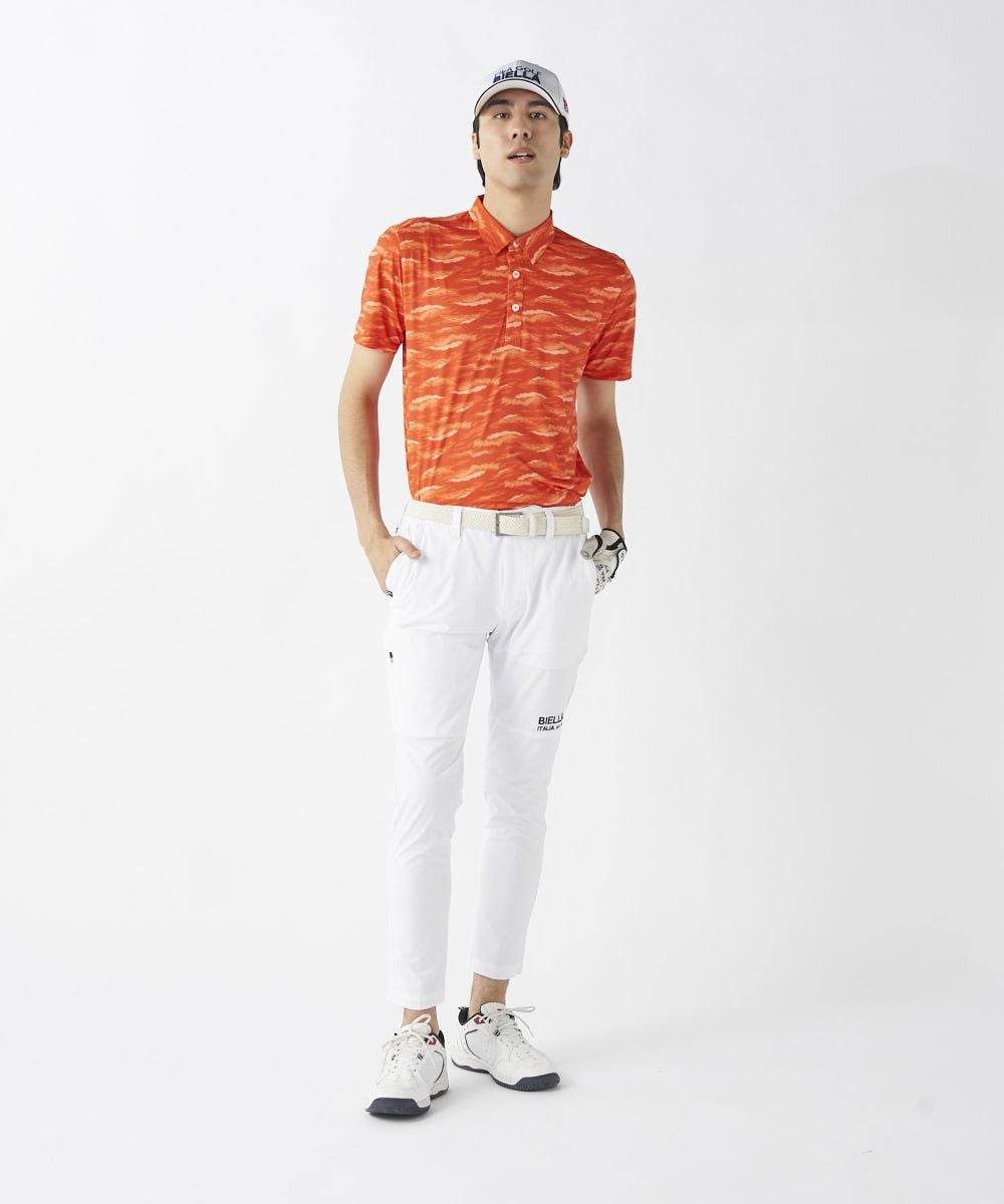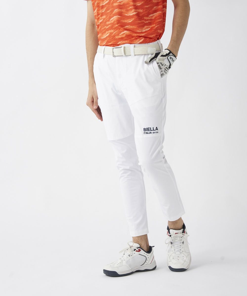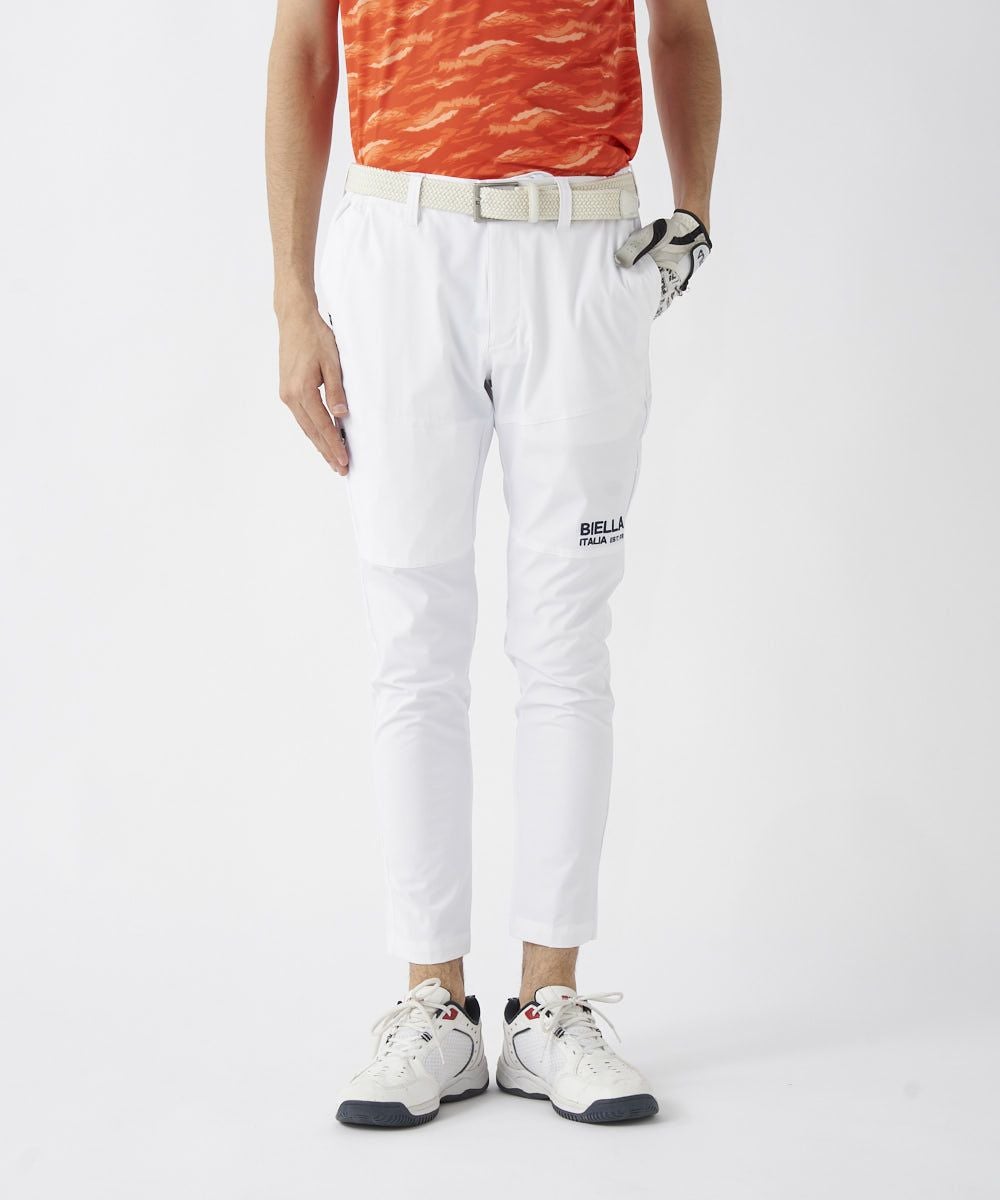 撥水コーティング加工で雨をしっかりガード。天候が変わりやすいゴルフシーンでも安心。裾上げいらずの9分丈仕様に加え、細身のテーパドシルエット。すっきりとしたシルエットで、スタイルアップも叶います。