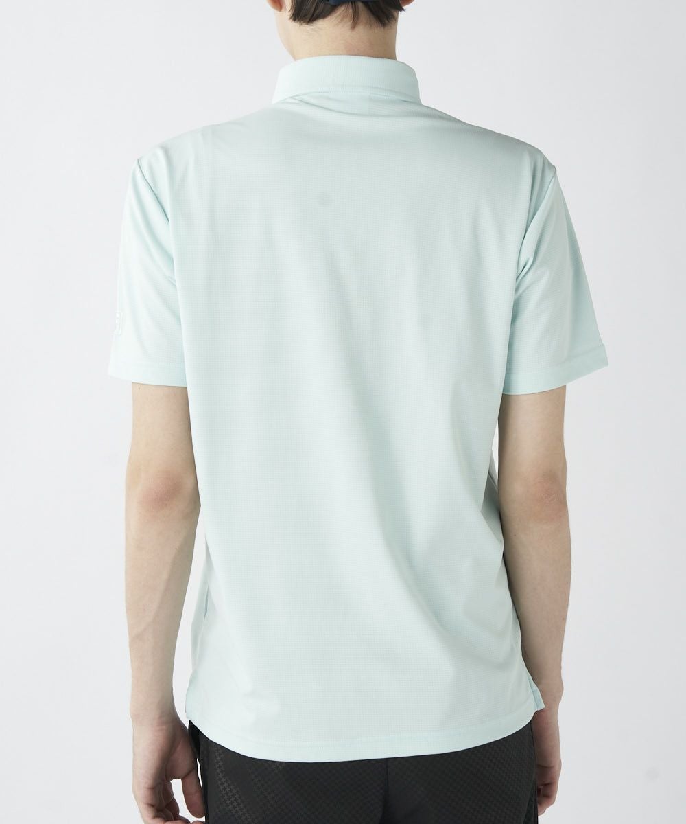 半袖のボタンダウンシャツ。両胸のロゴとテキストデザインがおしゃれな半袖シャツです。吸汗速乾/UV、ストレッチ機能付き。遮熱素材で猛暑対策もばっちり!汗をかいても快適にゴルフを楽しめます。