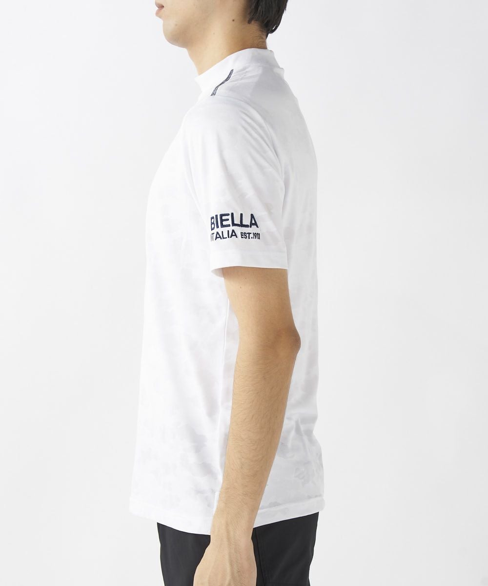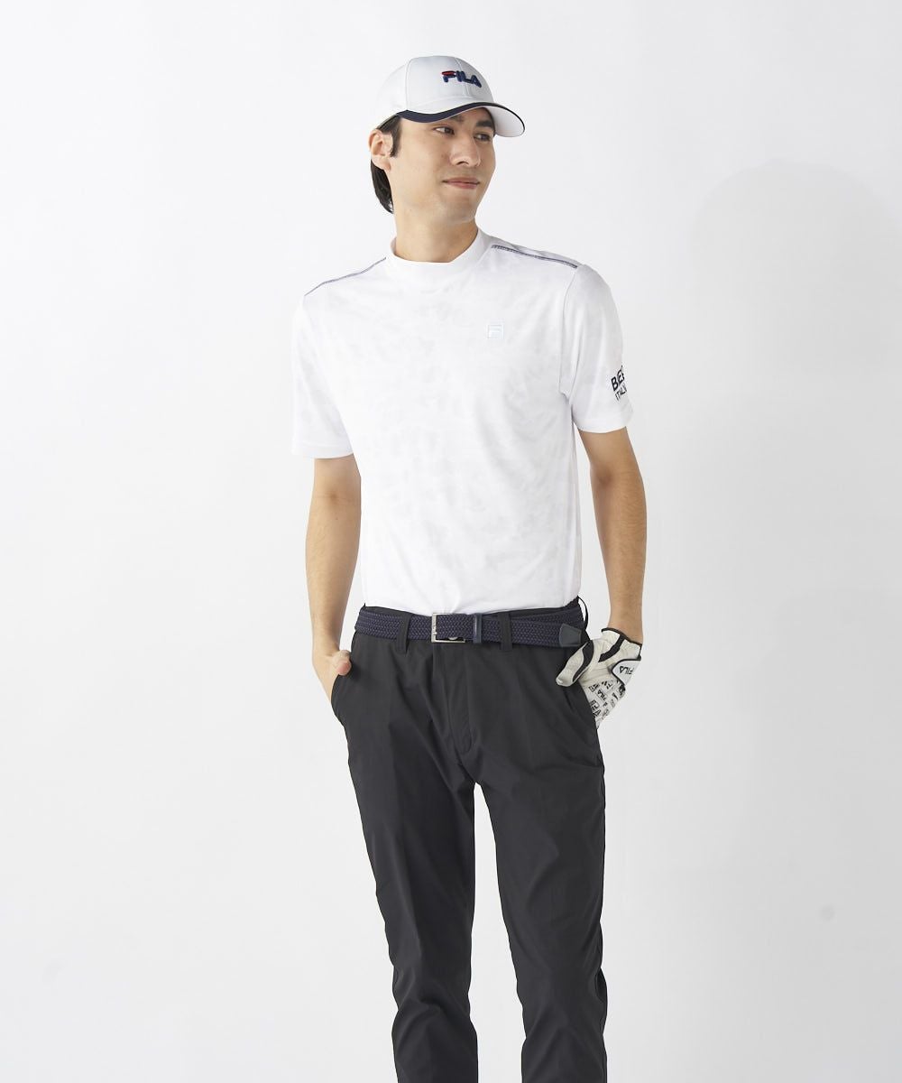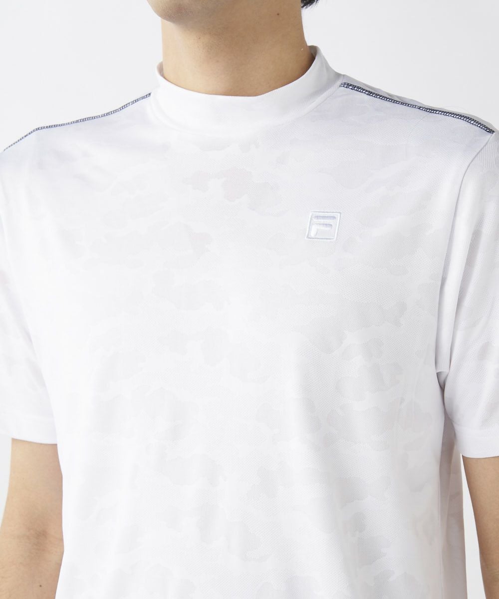 メンズ ジャガード編みモックネック半袖シャツ | 吸汗速乾・UVカット
