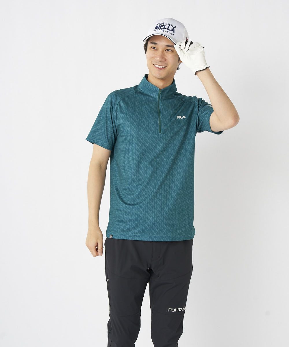メンズ 体感-5.4℃ 接触冷感 柄ハーフジップ半袖シャツ | 吸汗速乾・UV・接触冷感・遮熱
