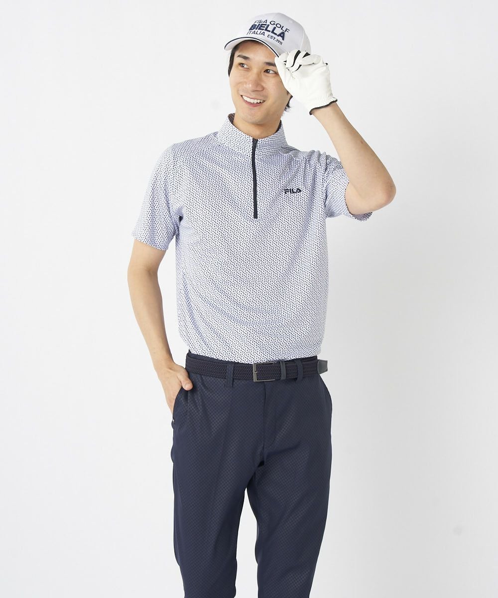 メンズ 体感-5.4℃ 接触冷感 柄ハーフジップ半袖シャツ | 吸汗速乾・UV・接触冷感・遮熱