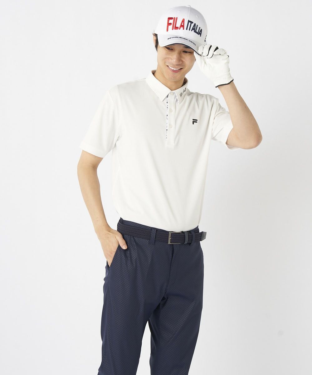 凹凸の表面感が特徴的なジャガード素材を採用。汗をかいても肌に張り付きにくく、夏のゴルフも快適に着用いただけます。幅広いコーディネートに活躍する、シンプルデザイン。