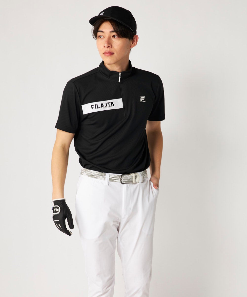 メンズ ハーフジップ半袖シャツ
