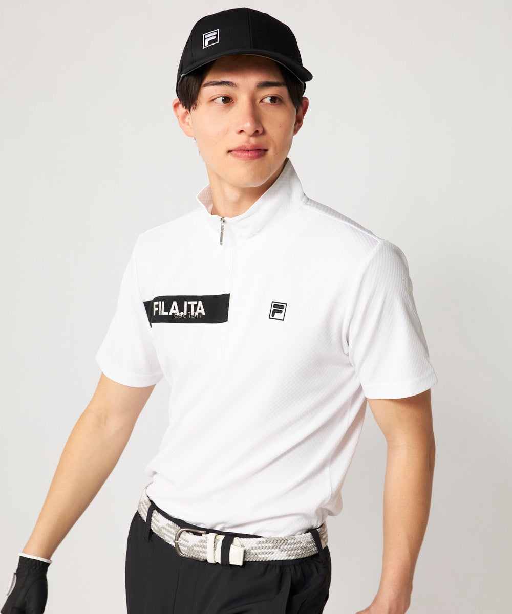 メンズ ハーフジップ半袖シャツ