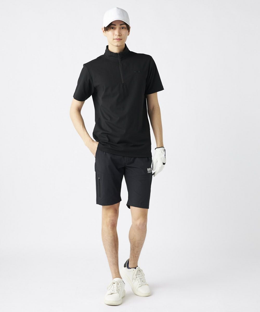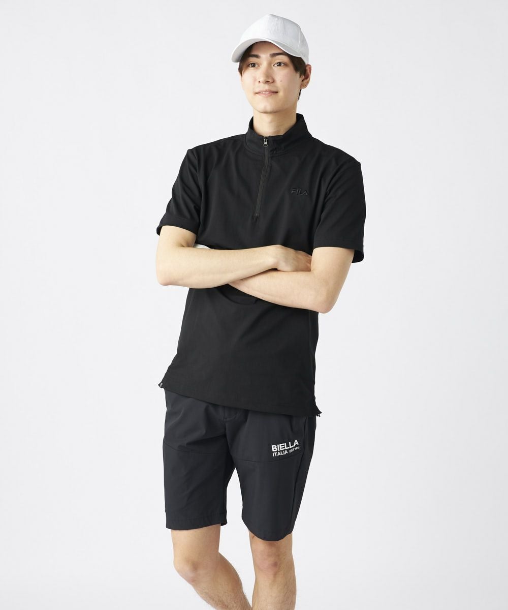 半袖のハーフジップシャツ、FILAのロゴをデザインしたアイテム。