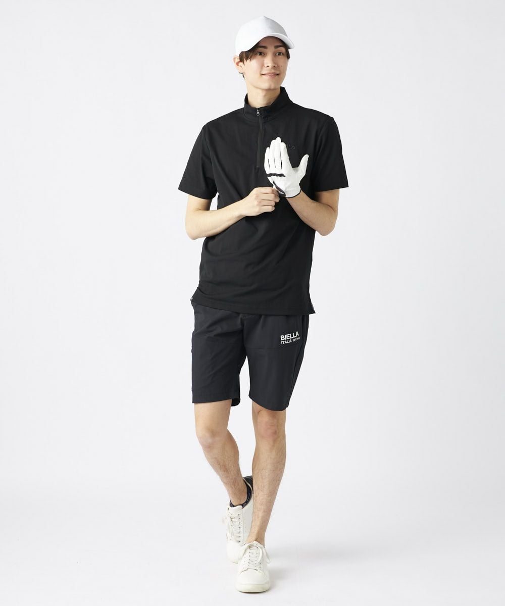 メンズ ハーフジップ半袖シャツ