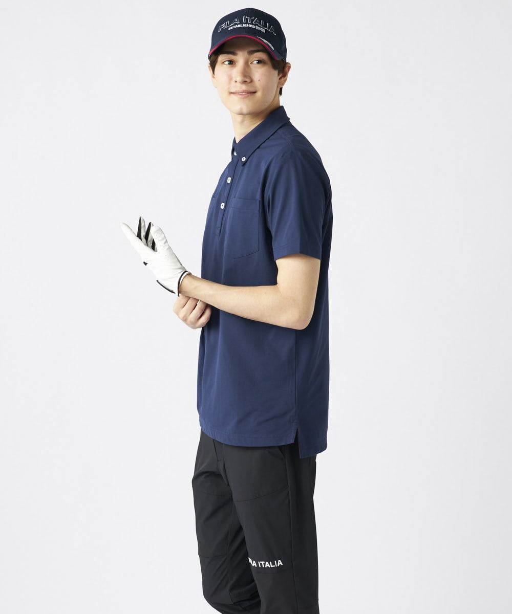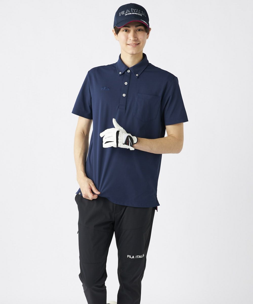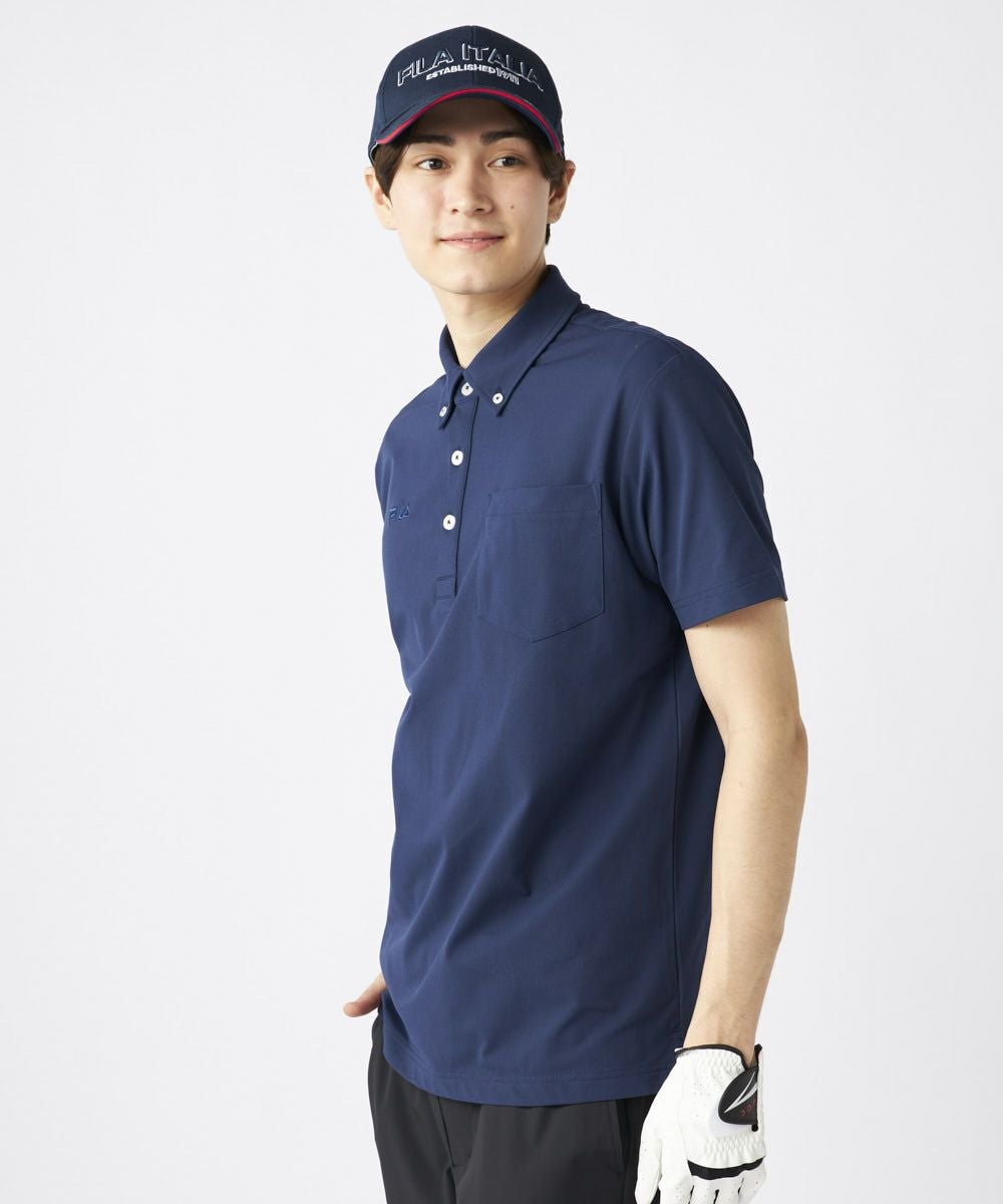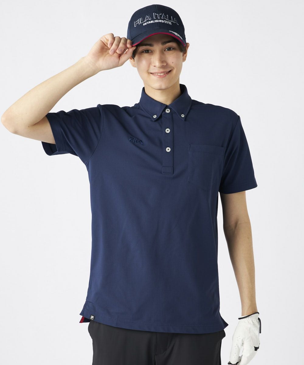 半袖のボタンダウンシャツ、FILAのロゴをデザインしたアイテム。胸ポケットがついたベーシックアイテム 。