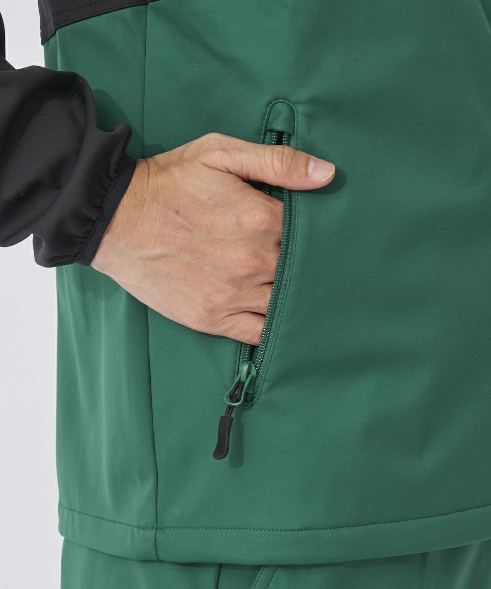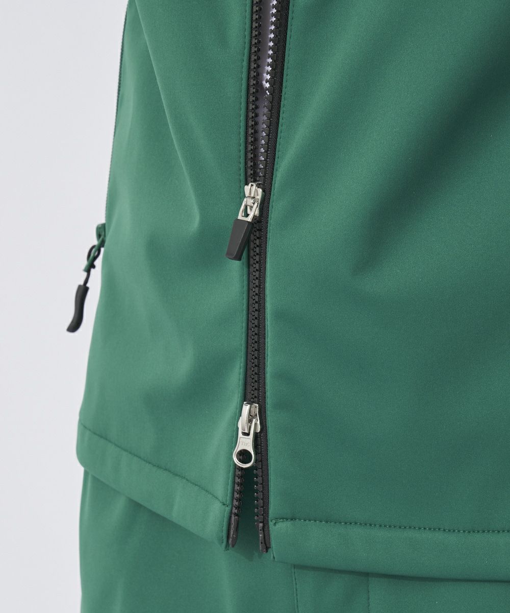 縦横に伸びる3層ボンディング素材を採用することで、ゴルフシーンにぴったりの一着に仕上がりました。