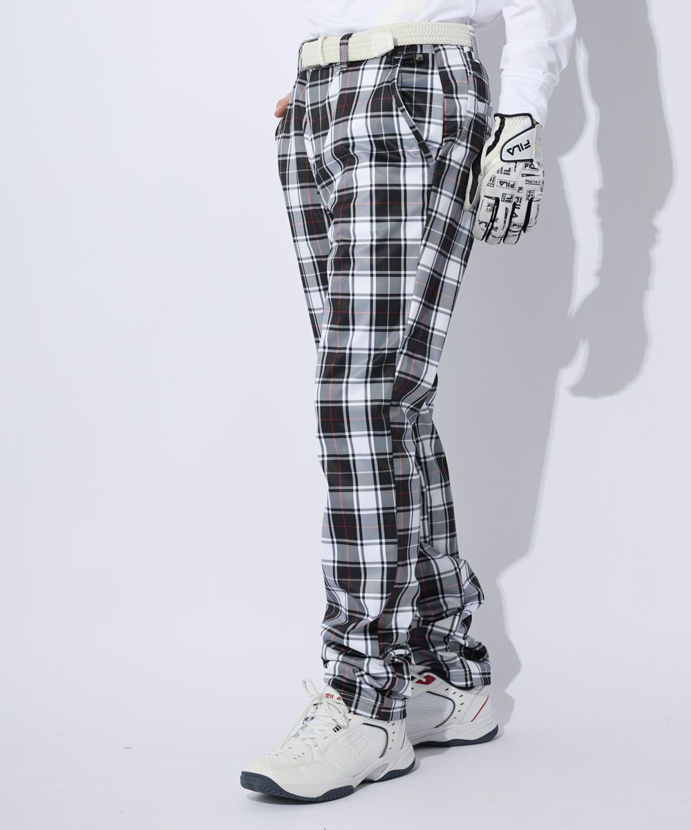 ストレッチ性があり裏フリース素材とフィルム加工の3層ボンディングを使用したあったか細身のテーパードシ ルエットパンツ。 トラッドテイストのタータンチェックプリントデザインで着用しやすいウエストゴム仕様。