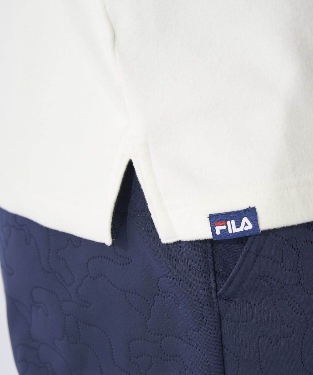 フロントは、FILA GOLFのラインプリントがアクセントになっており、一枚で着やすいアイテムに◎