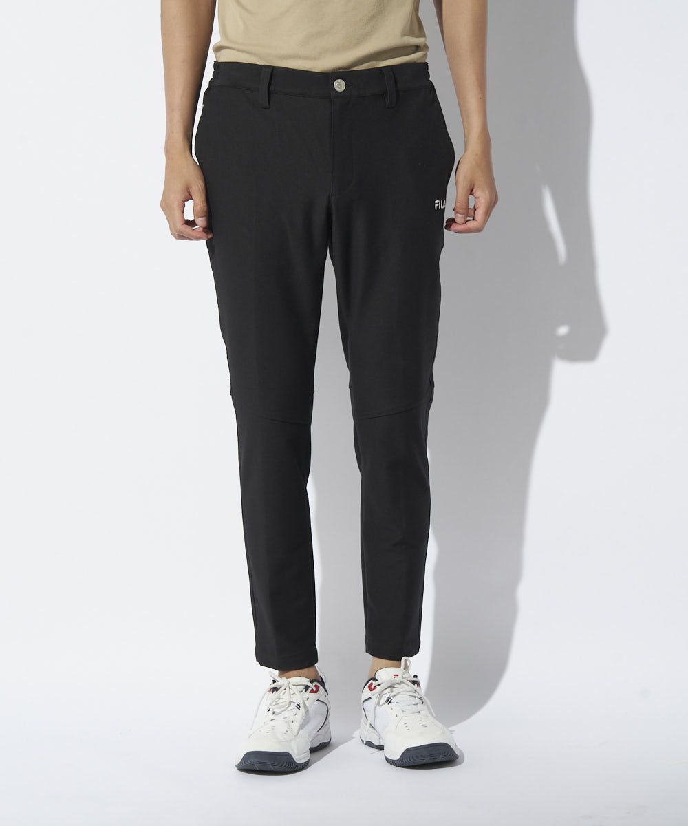 肌触りが良く全方向に伸びる8WAYストレッチ素材のパンツ。ちょっとした雨の日でも安心の撥水加工で、裾 上げいらずの9分丈仕様になっています。細身のテーパードシルエットはゆったりと履けるウェストシャーリン グ仕様です。