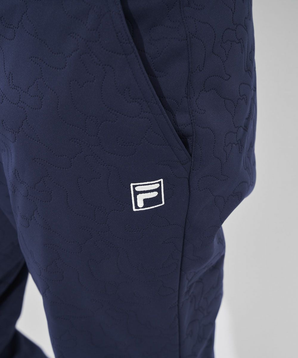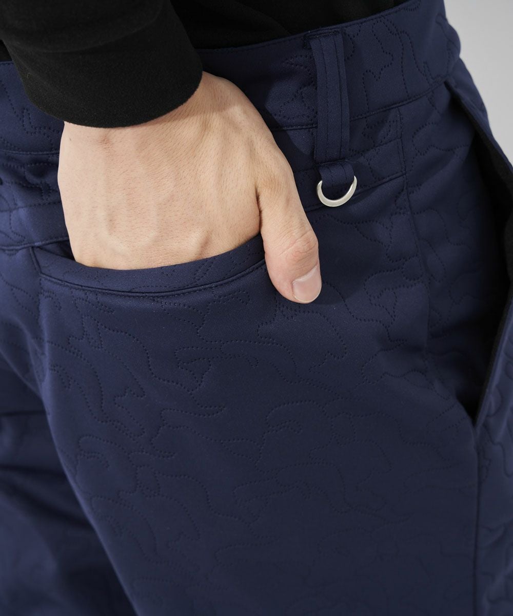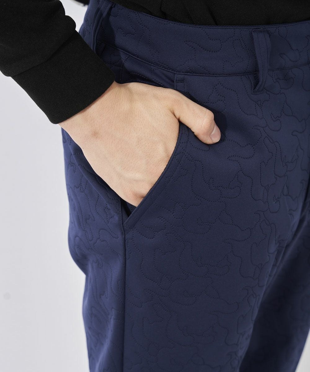 ストレッチ性の高いカモ柄高周波キルトの3層ボンディング素材を使用したパンツ。 細身のテーパードシルエ ットになっており薄手の素材でゴルフのプレーに最適。 便利なオリジナルDカンと腰裏に滑り止めが付きます 。