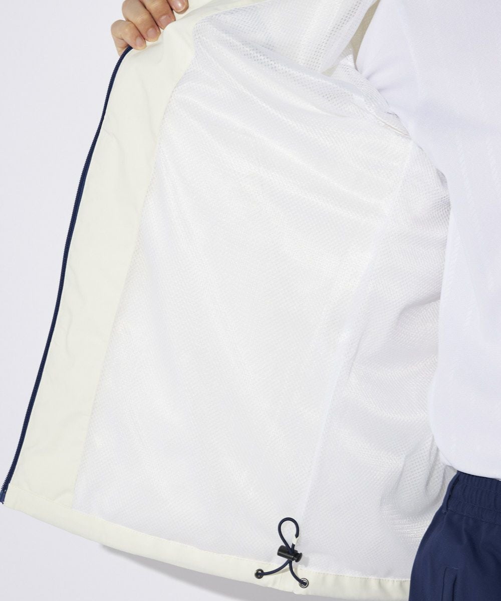 ウエスト・袖口はマジックテープで、裾口は内側スピンドルでしぼり調節が可能。