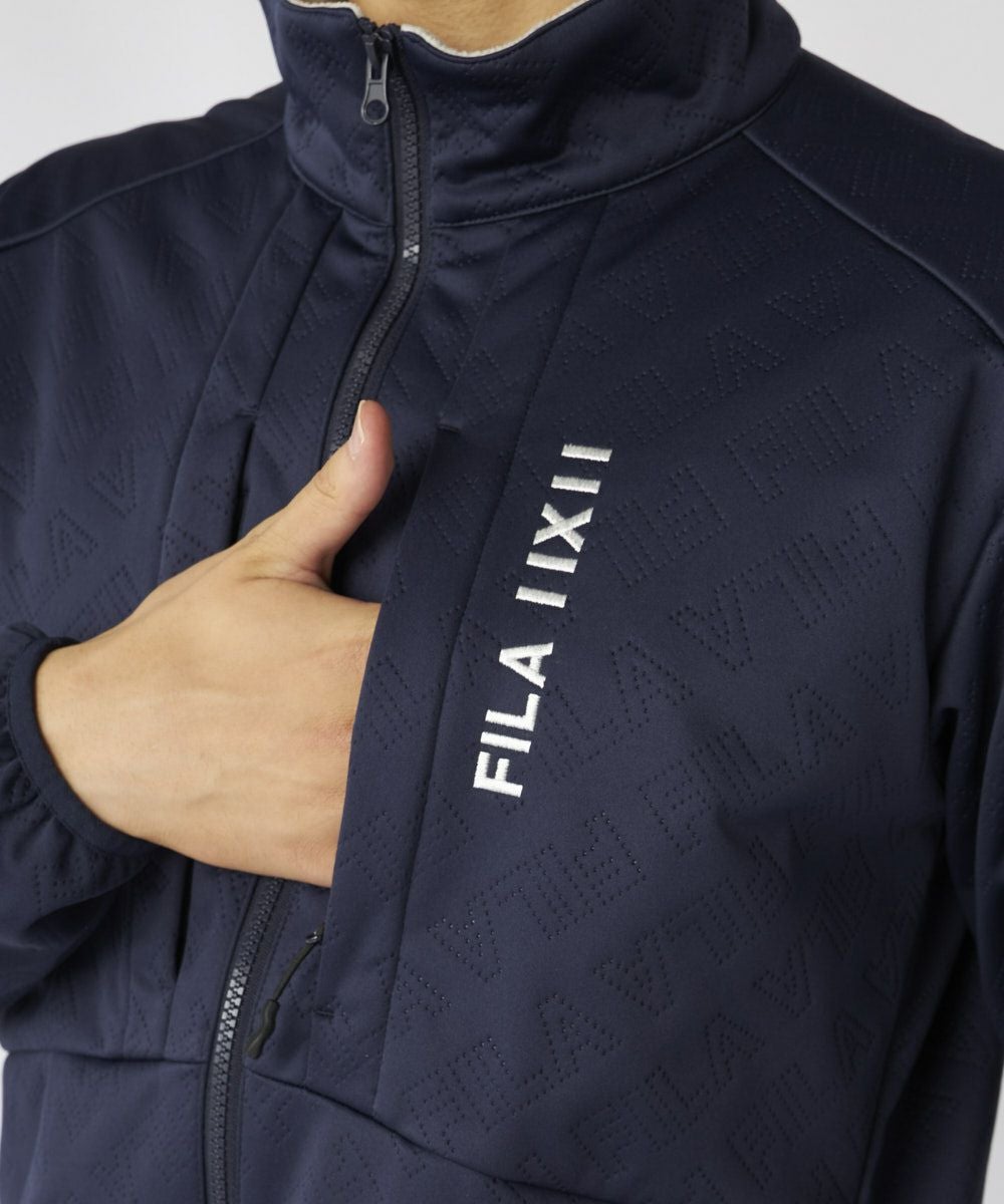 ストレッチ性の高いFILAオリジナル柄でキルティングを施した3層ボンディング素材を使用。外からの冷たい風を防ぐ防風機能と、体温を逃さない保温性を両立。ボンディング特有のハリがありながら、高いストレッチ性がダイナミックなスイングをサポートし、プレー中のストレスを軽減します。軽快で暖かい、秋冬に最適な素材です。