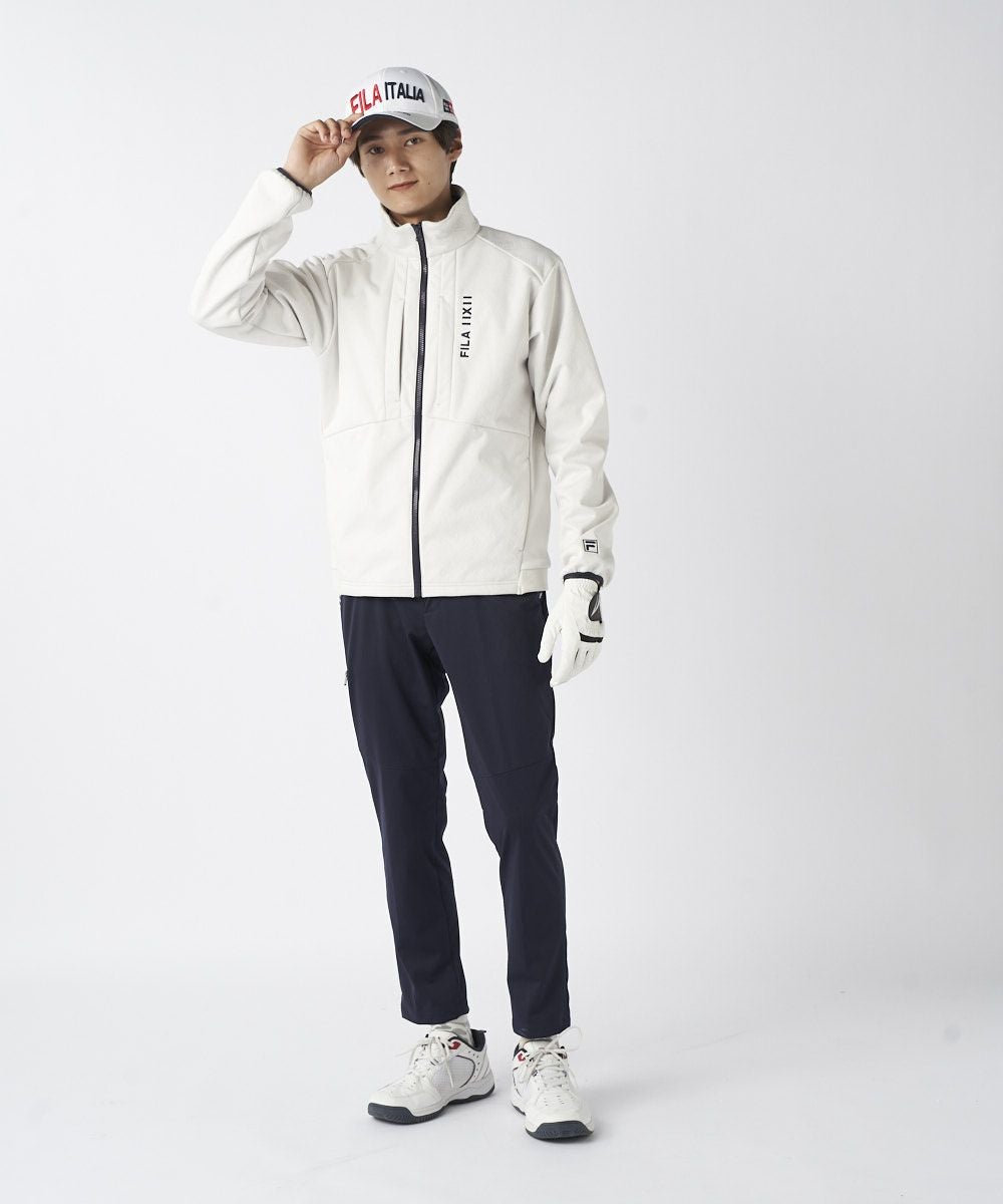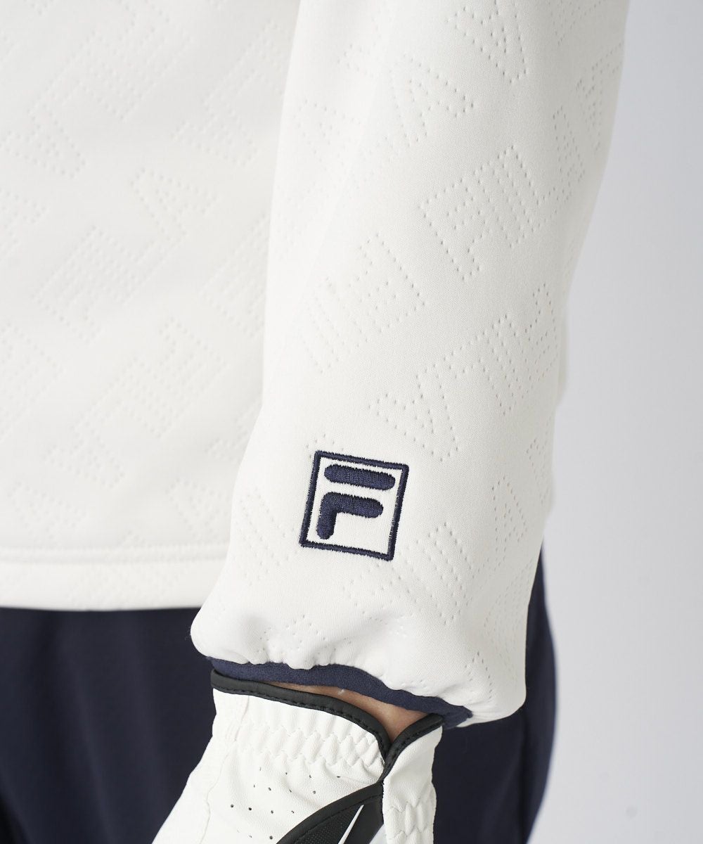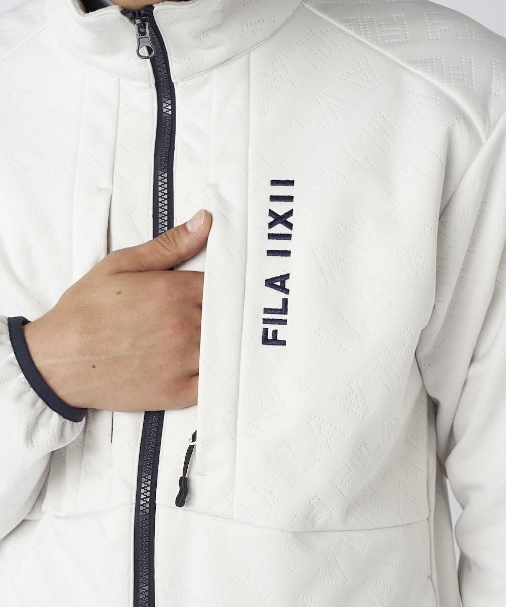 ストレッチ性の高いFILAオリジナル柄でキルティングを施した3層ボンディング素材を使用。外からの冷たい風を防ぐ防風機能と、体温を逃さない保温性を両立。ボンディング特有のハリがありながら、高いストレッチ性がダイナミックなスイングをサポートし、プレー中のストレスを軽減します。軽快で暖かい、秋冬に最適な素材です。