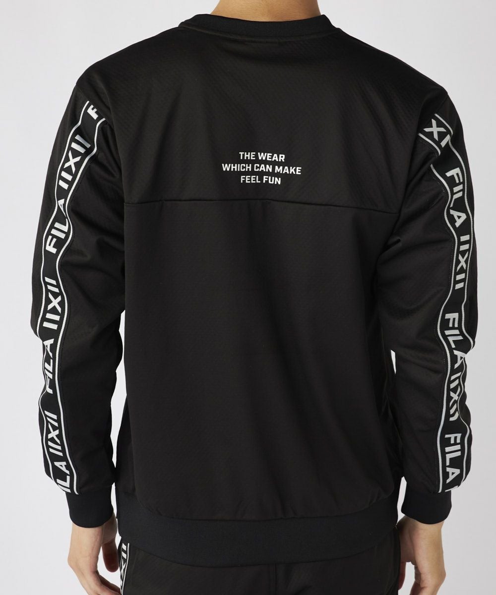 マットな素材感と、FILAらしいスポーティな切替配色が特徴。特に、背中に大胆に施されたFILA GOLFのロゴプリントが、後姿に圧倒的な存在感とブランドの自信を表現します。サイドの配色パイピングがボディラインをシャープに見せ、アクティブでありながら洗練されたルックスを演出します。