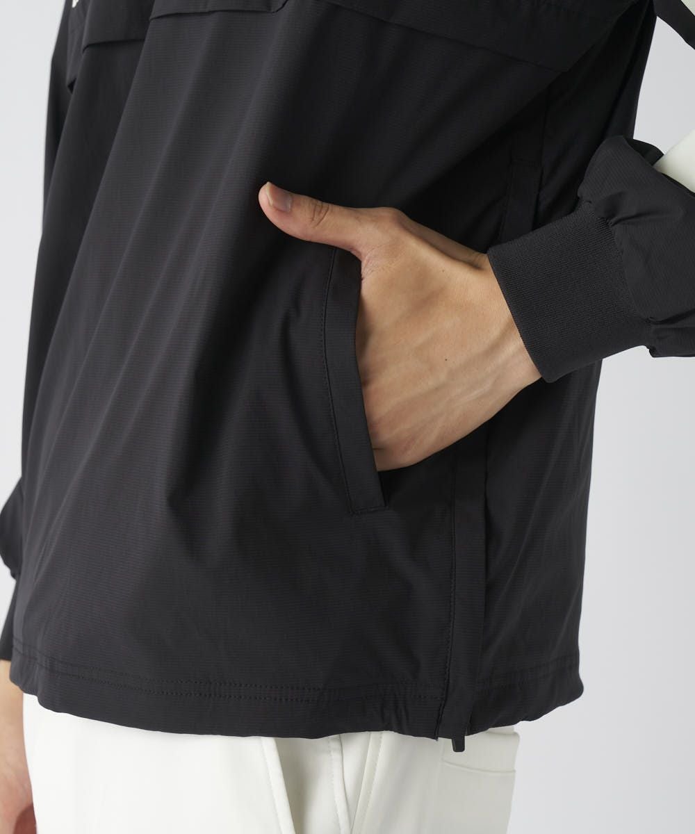 軽くて肌ざわりの良いツイル素材を使用。裏地はメッシュ仕様で軽い仕上がりになっており、着膨れせず一日中サラッと快適な着心地をキープします。高いストレッチ性がスムーズなスイングをサポートし、さらに撥水加工も施されているため、急な小雨や水滴を弾き、アクティブなプレーに集中できます。