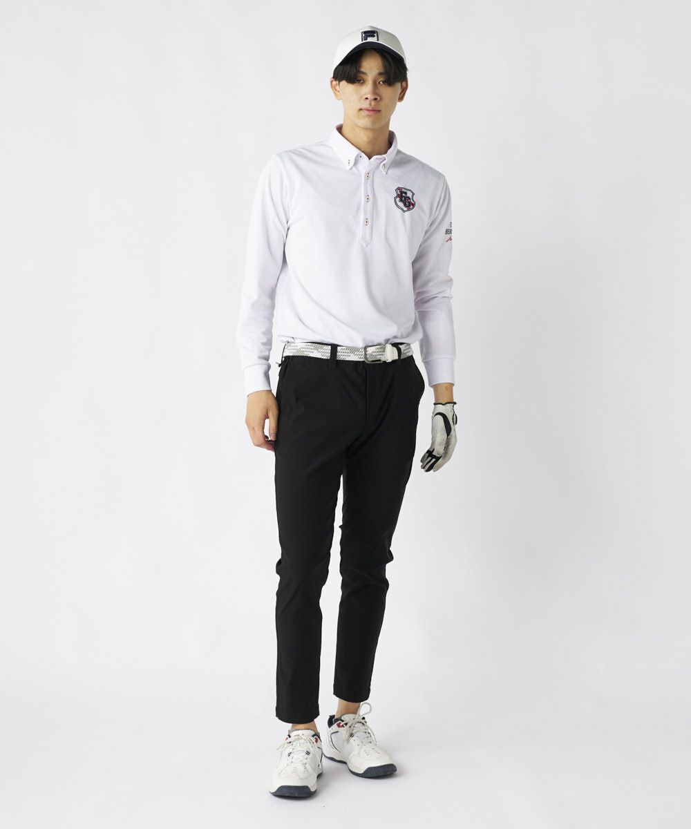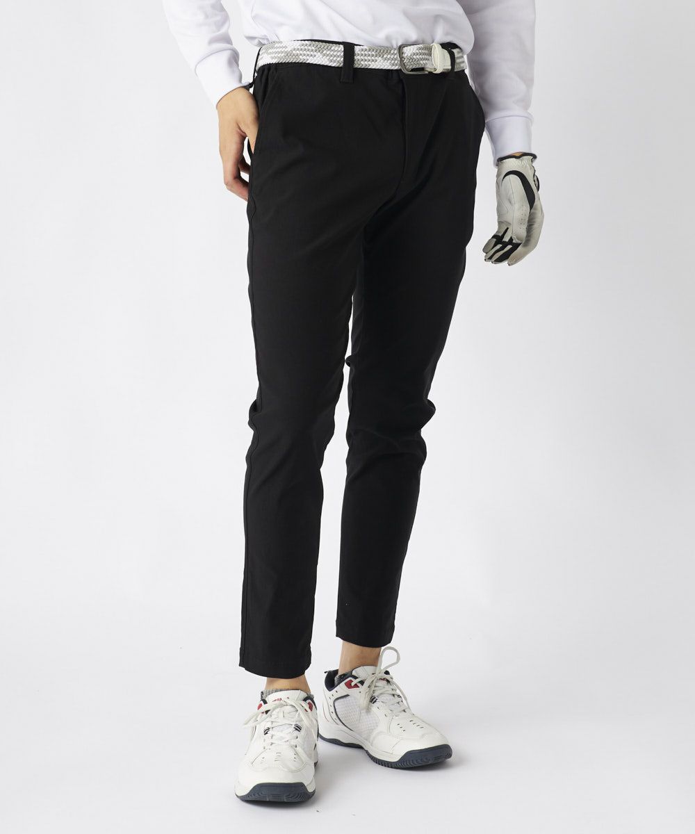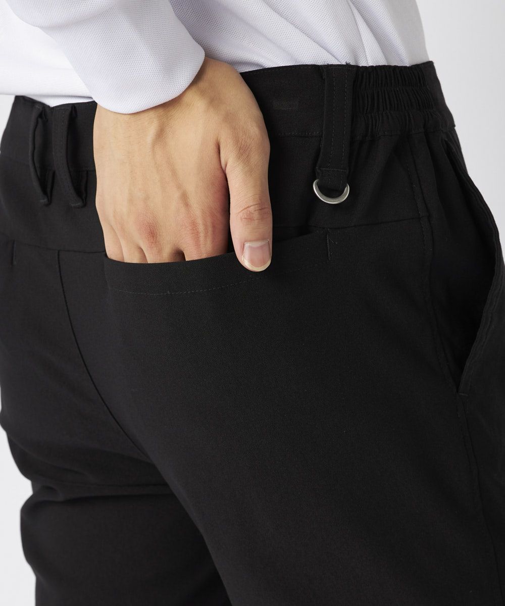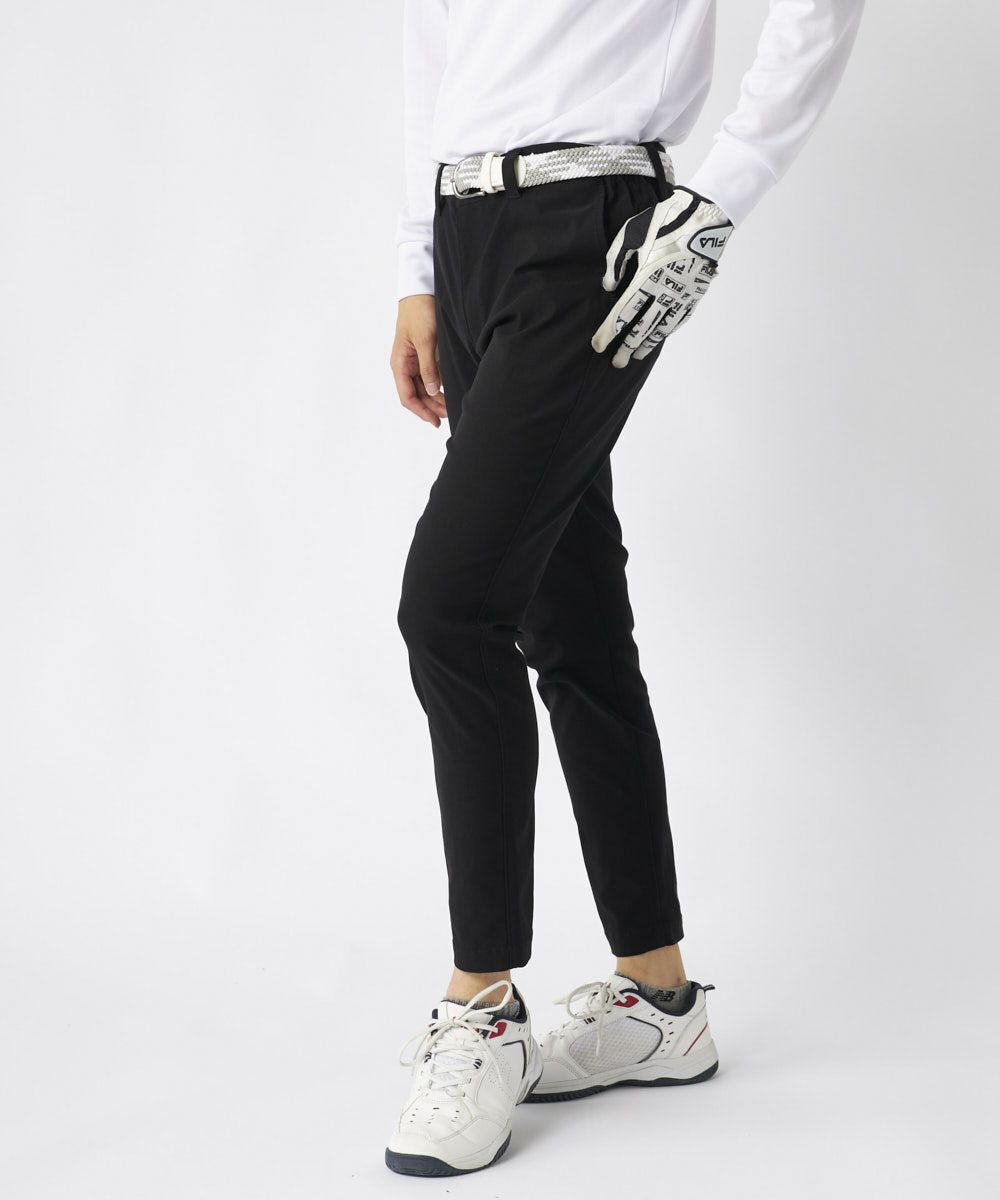 裾上げ要らずの9分丈に設計された細身のテーパードシルエットが特徴。脚のラインをすっきりと美しく見せ、洗練された大人のゴルフスタイルを演出します。ウエストはシャーリング仕様でゆったりと履け、腰裏にはシャツが出にくい滑り止め、さらにオリジナルDカンを装備するなど、プレー中の快適性に徹底的にこだわりました。