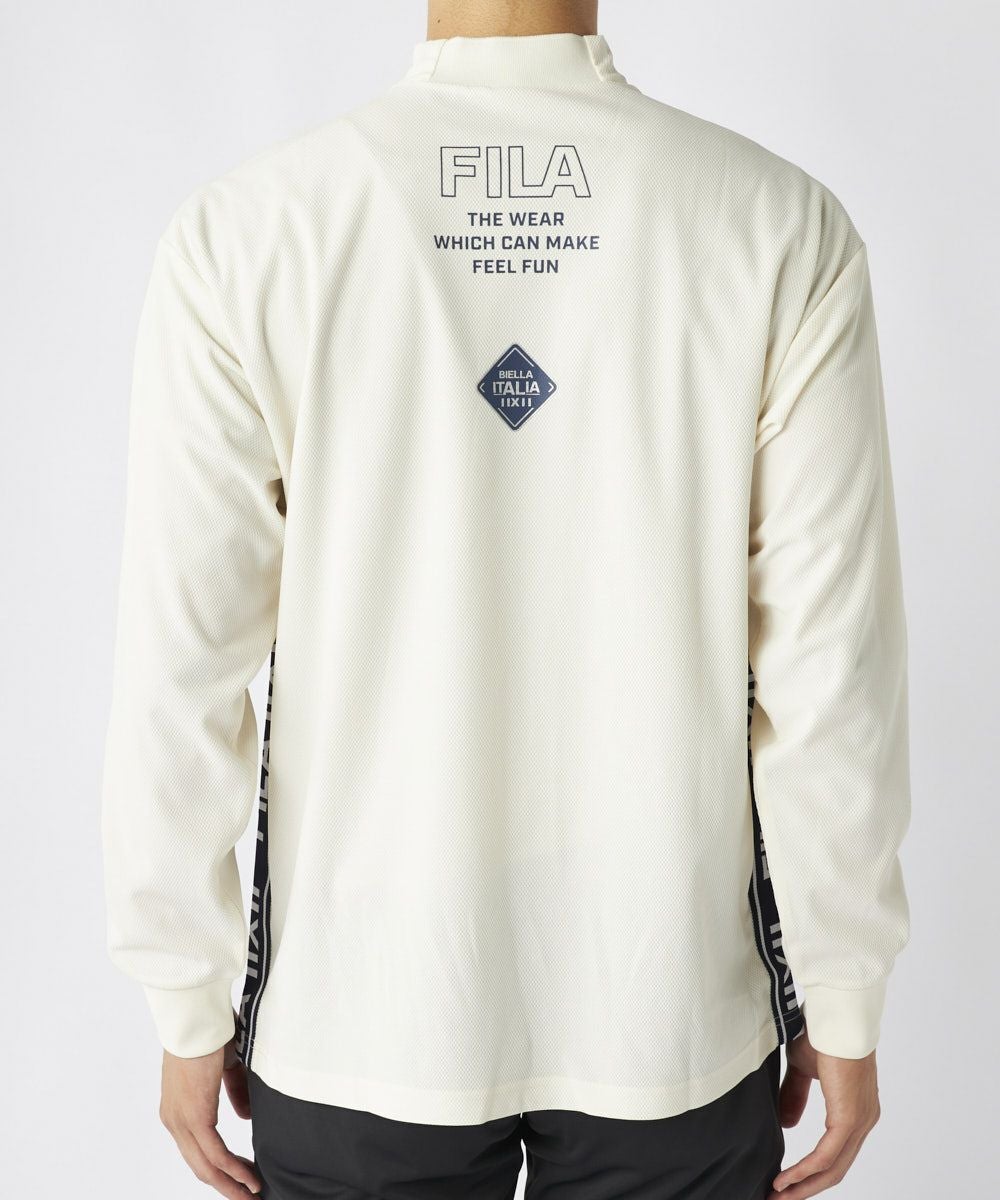 メンズ バックプリント長袖モックネックシャツ