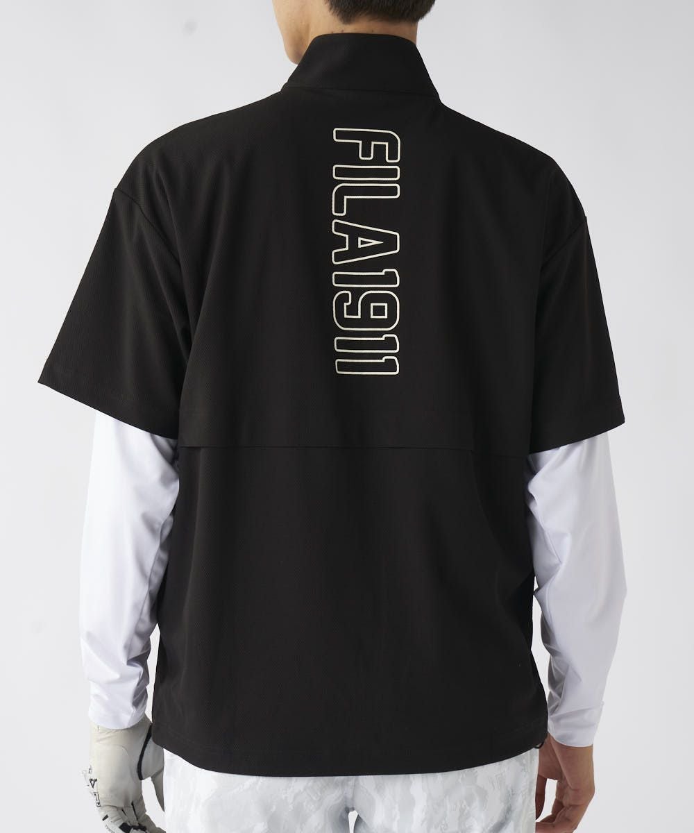長袖インナーと半袖プルオーバーがセットになった、レイヤード風のデザインが魅力です。ハーフジップ仕様でスポーティな印象を与えつつ、ポップコーンジャガードの繊細な表情が上品なムードを演出。機能性とファッション性を兼ね備えた、FILAらしい一着です。