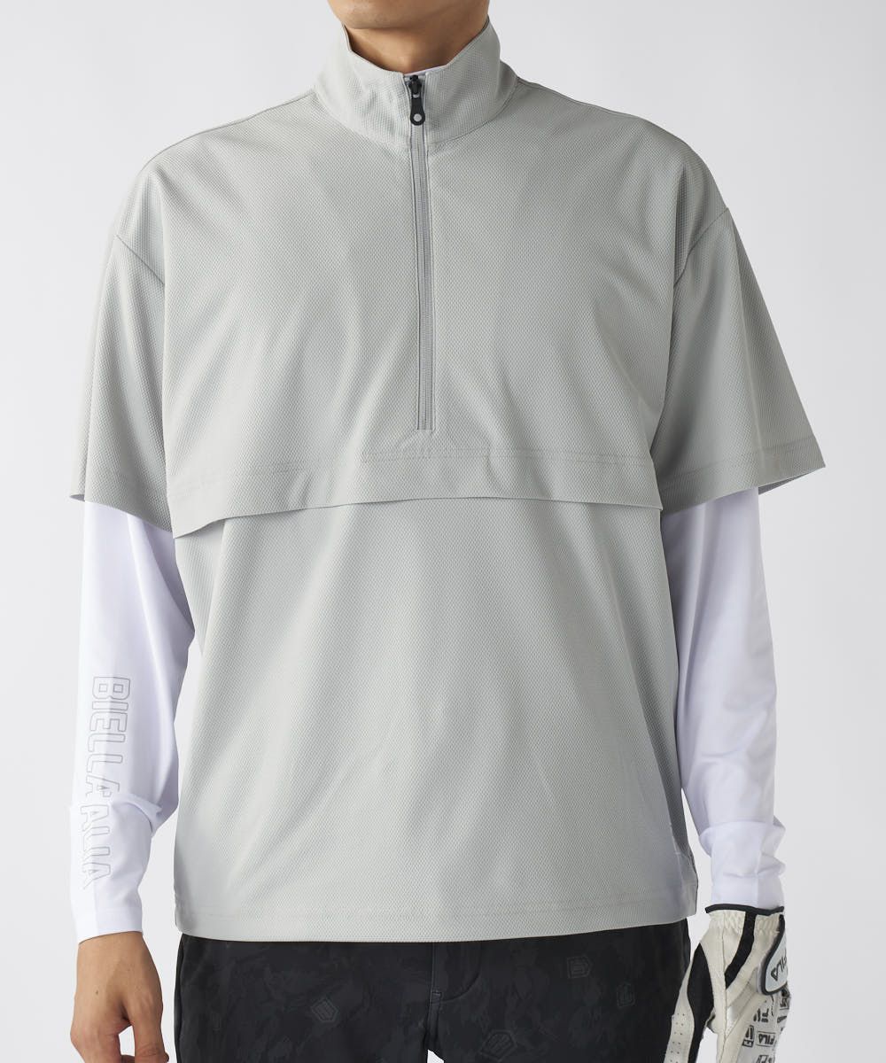 半袖プルオーバーには肌ざわりの良いポップコーンジャガードスムースを使用し、吸汗速乾とUVカット機能でアクティブなプレーをサポート。セットの長袖インナーも薄手ながら暖かく、寒い日のラウンドも快適なコンディションをキープします。