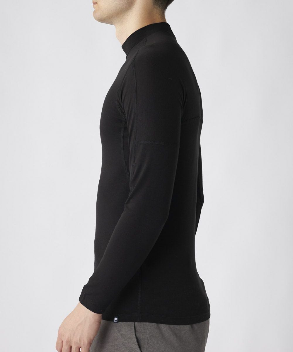 タイトすぎず、程よく身体にフィットするハイネックデザイン。ウェアの下に着てもゴワつかず、スマートなシルエットをキープします。ロゴを控えめに配したミニマルなデザインは、どんなトップスともスムーズに馴染みます。