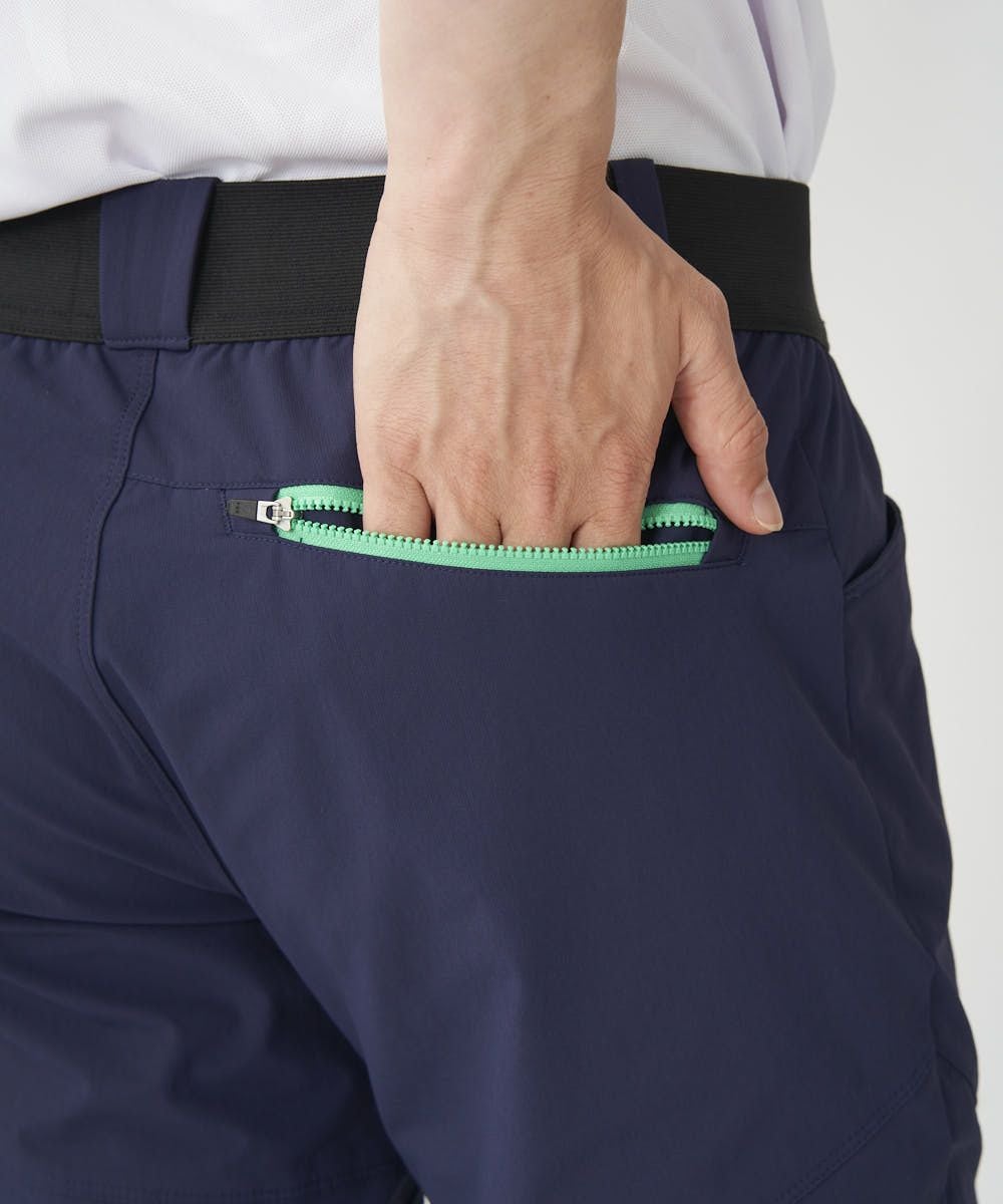 あらゆる動作を快適にする特殊な縫製パターンを採用。4WAYストレッチ生地と相まって着用時のストレスを感じさせません。さらにウエストゴムのベルトレス仕様でフィット感を高めました。カラビナで細かな道具を装着できるようベルトループは残し、使い勝手の良いジップポケットを配置。撥水加工を施すことでアウトドアシーンにおける理想のメンズウェアが完成しました。