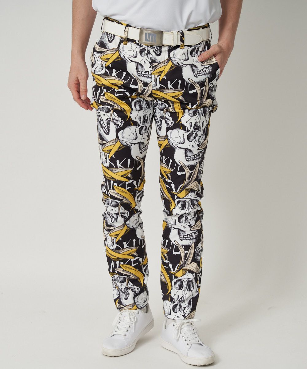 メンズ ストレッチツイル 柄ロングパンツ Skull Monkey/スカルモンキー