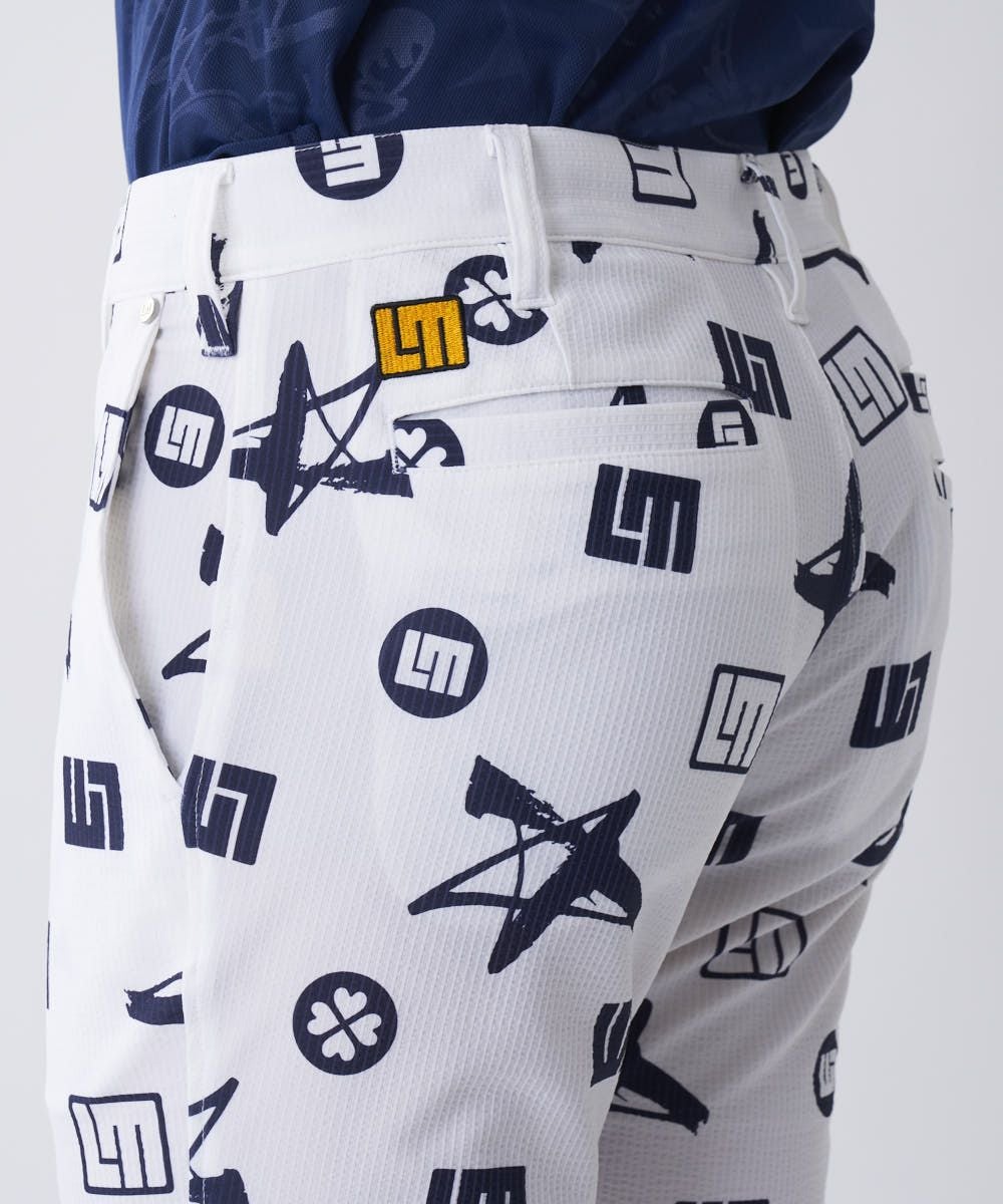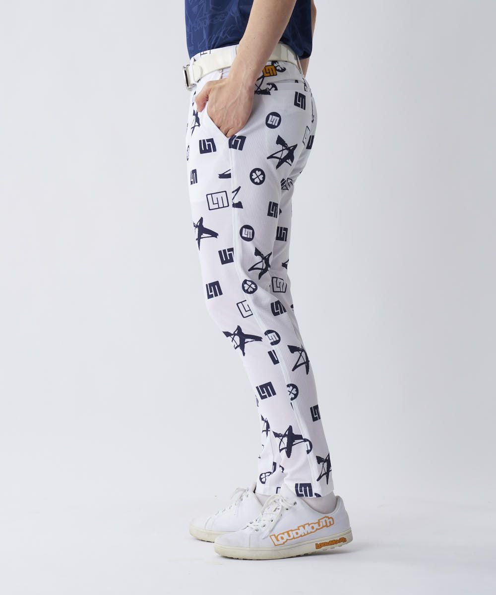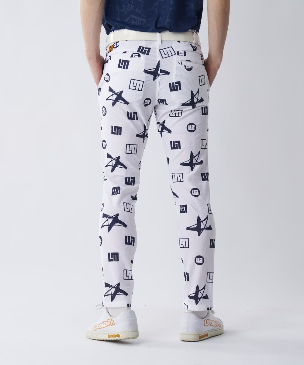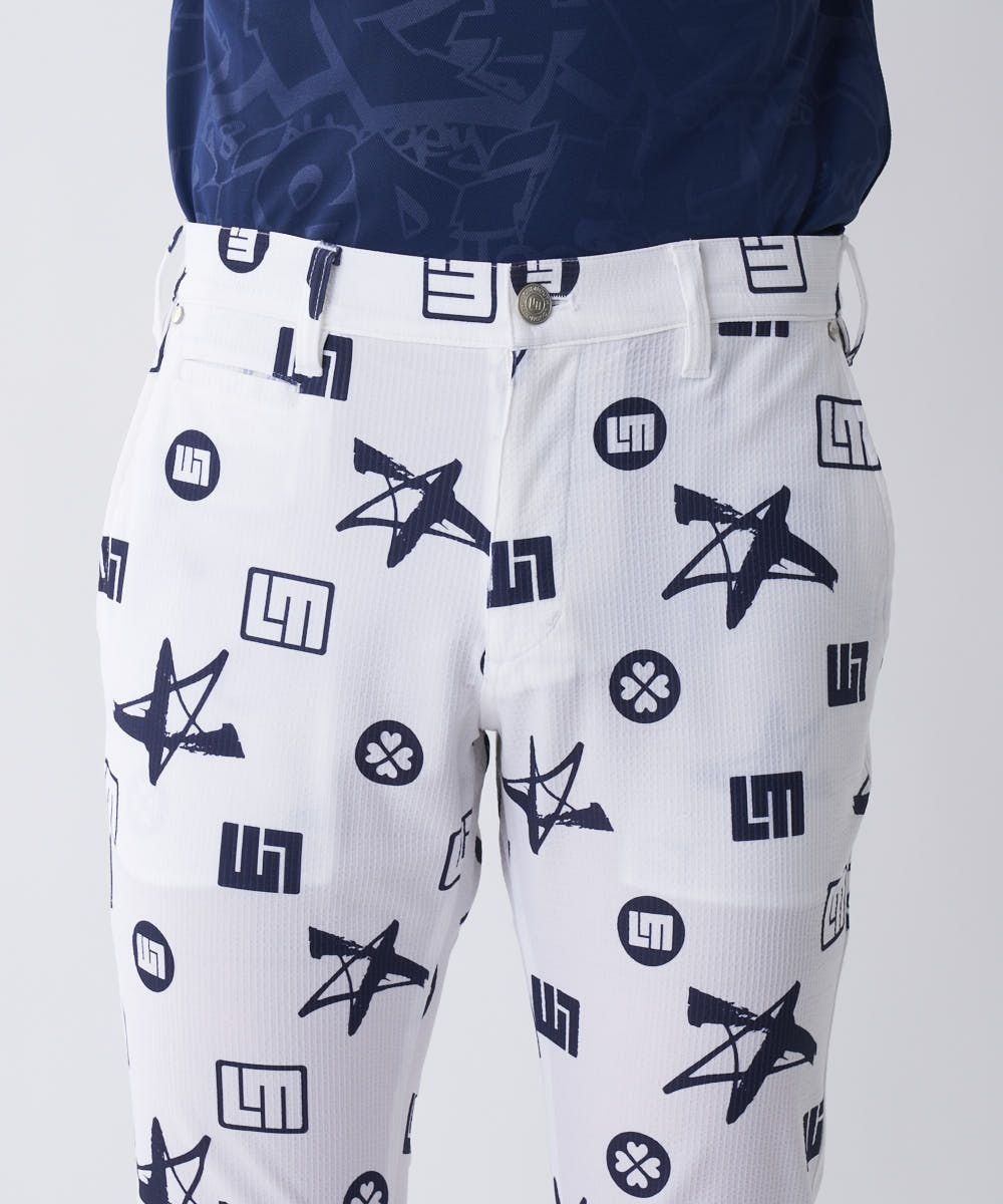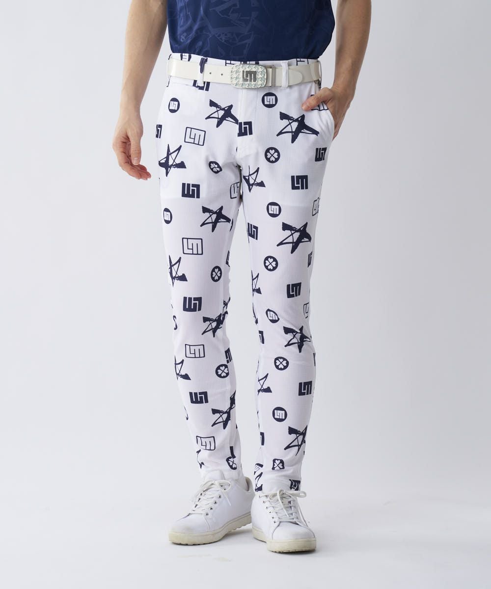 メンズ ストレッチサッカー 柄ロングパンツ ホワイト