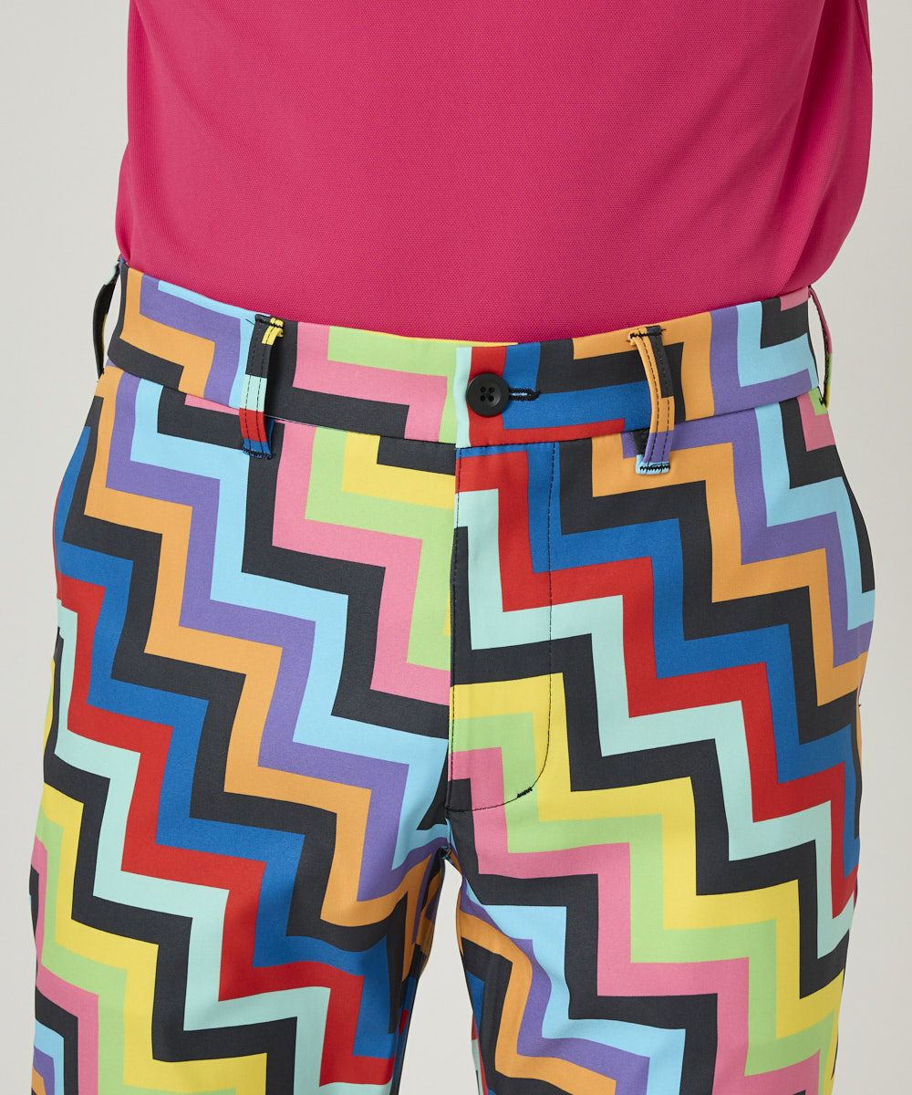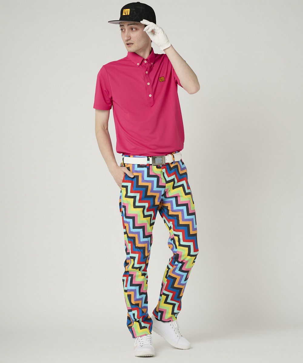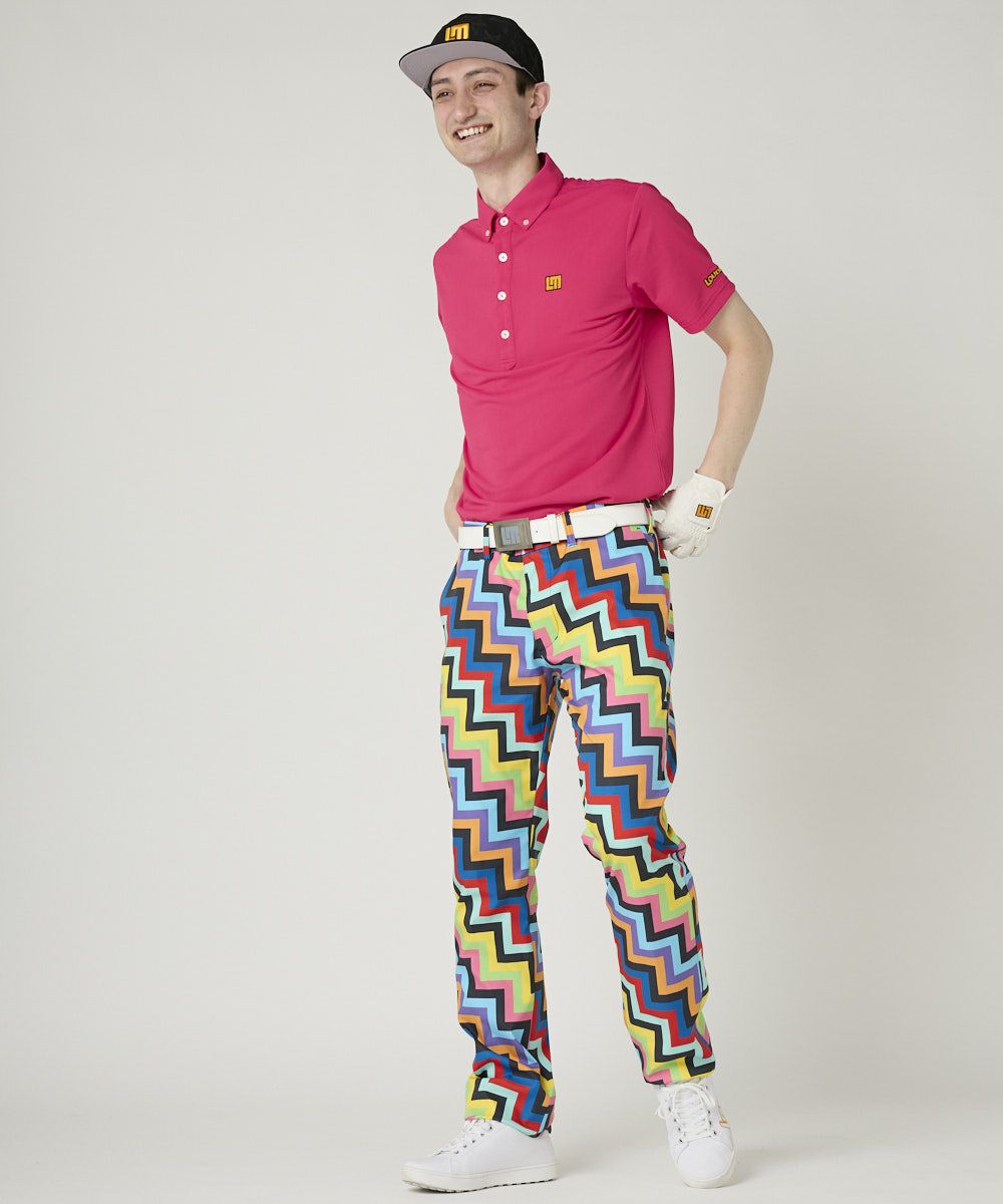 動きやすいポリエステルツイル素材を使用した柄パンツ。