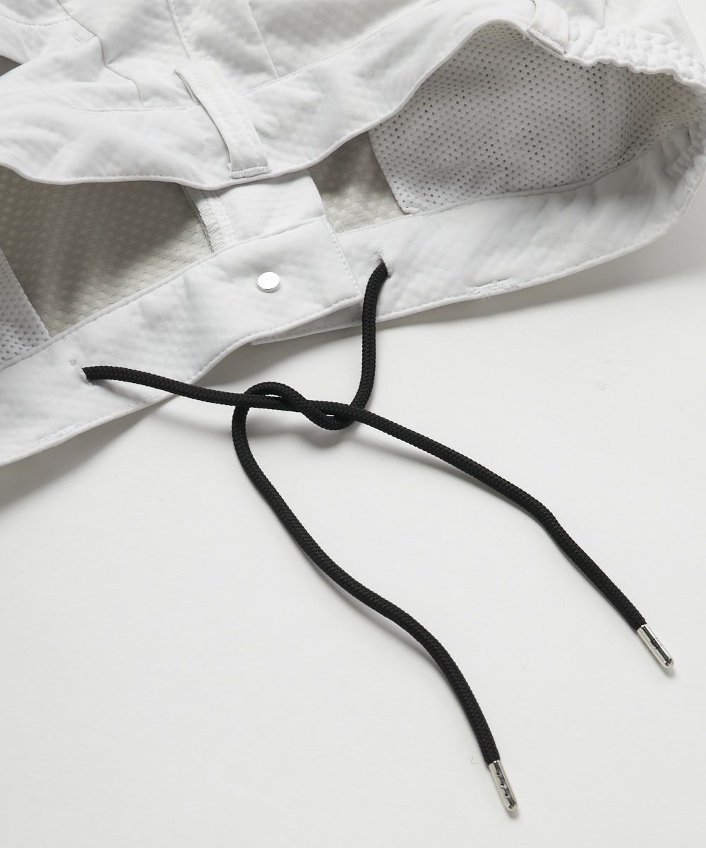 極薄カットソー+コーティング加工素材の裏面にメッシュ素材をボンディングすることで、軽量+防風性を確保。