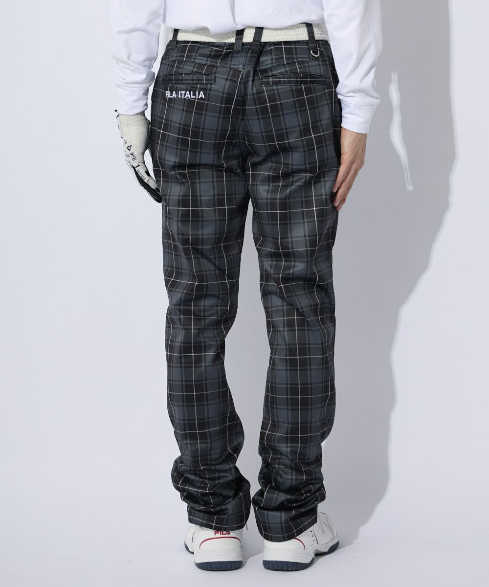 ストレッチ性があり裏フリース素材とフィルム加工の3層ボンディングを使用したあったか細身のテーパードシ ルエットパンツ。 トラッドテイストのタータンチェックプリントデザインで着用しやすいウエストゴム仕様。