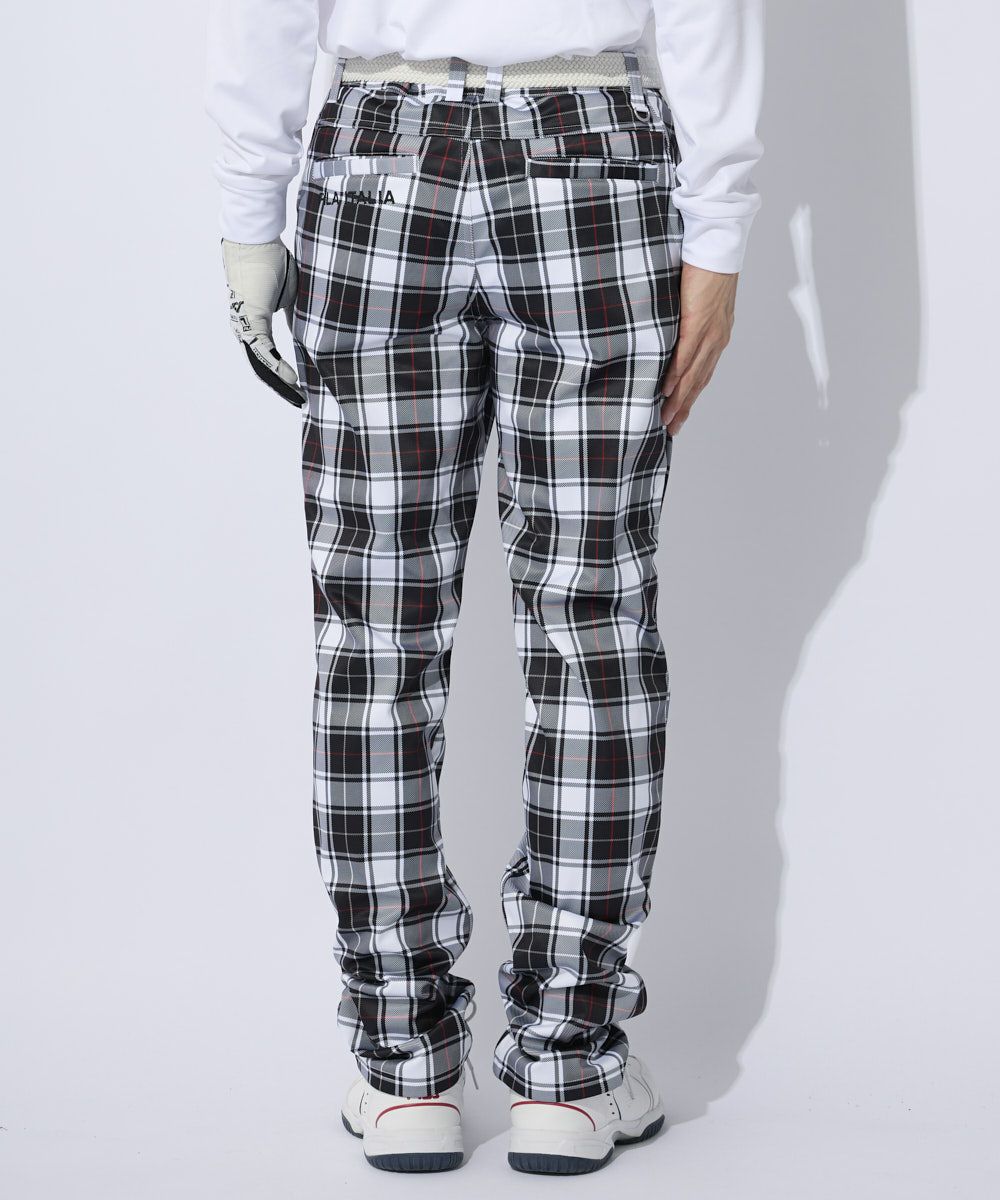 ストレッチ性があり裏フリース素材とフィルム加工の3層ボンディングを使用したあったか細身のテーパードシ ルエットパンツ。 トラッドテイストのタータンチェックプリントデザインで着用しやすいウエストゴム仕様。