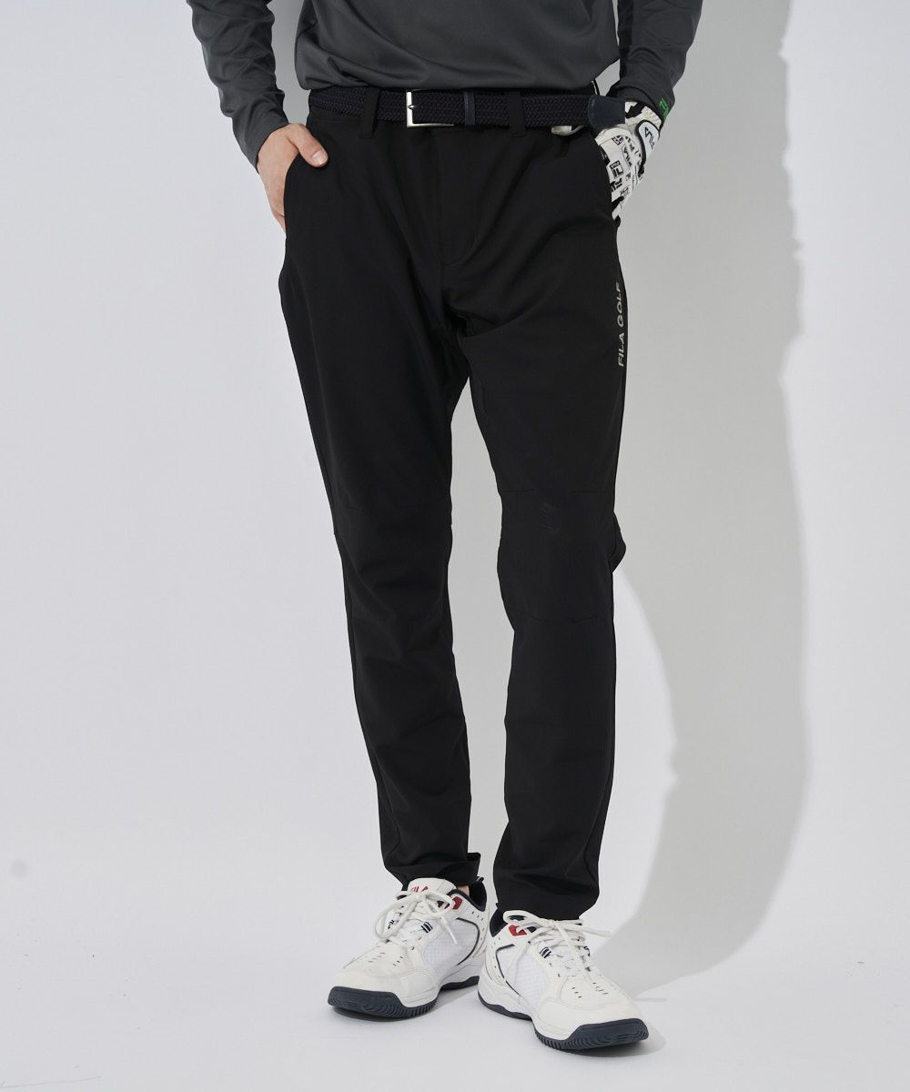 ストレッチ性に優れた薄手の軽やかな素材を採用。 裏面が凸凹状になっているので肌に張り付かず簡単に着用 していただけます。右ポケットに便利なファスナー付き。FILA刺繍とFILAGOLFの刺繍が入ります。