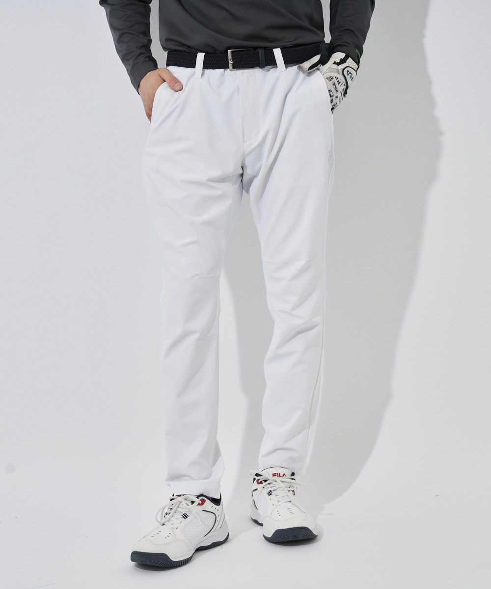 ストレッチ性に優れた薄手の軽やかな素材を採用。 裏面が凸凹状になっているので肌に張り付かず簡単に着用 していただけます。右ポケットに便利なファスナー付き。FILA刺繍とFILAGOLFの刺繍が入ります。