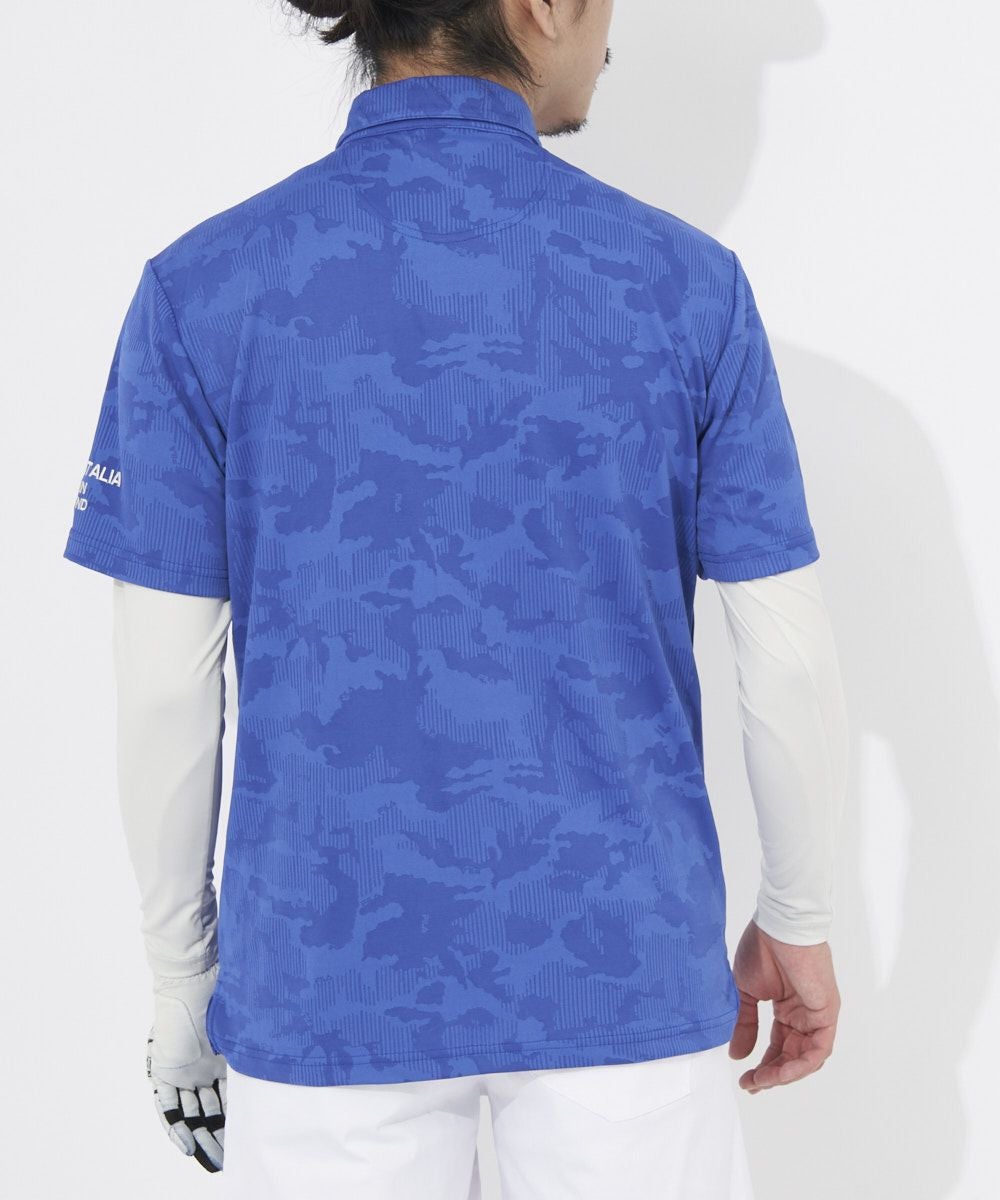 リサイクル素材を使用したジャガード素材のシャツとVネックインナーのセットアイテム。衿付けのヘリテージストライプテープがアクセントになります。裾にスリットをつけて着用時にお腹周りのしわを軽減させます。