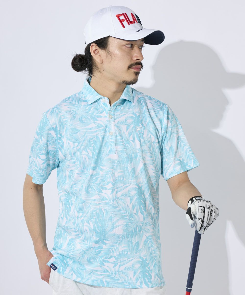 メンズ ボタニカルプリント半袖シャツ|吸汗速乾 / UVカット / 接触冷感 / 遮熱