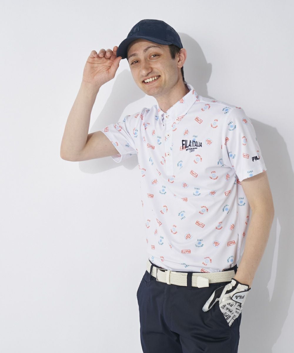 表面には遮熱性機能を、肌面には接触冷感機能を備えたひんやり素材のボタニカル柄半袖シャツです。綿生地と比較して-5.4℃の差があります。レディースと共通のリゾート調モチーフをちりばめたプリント柄です。